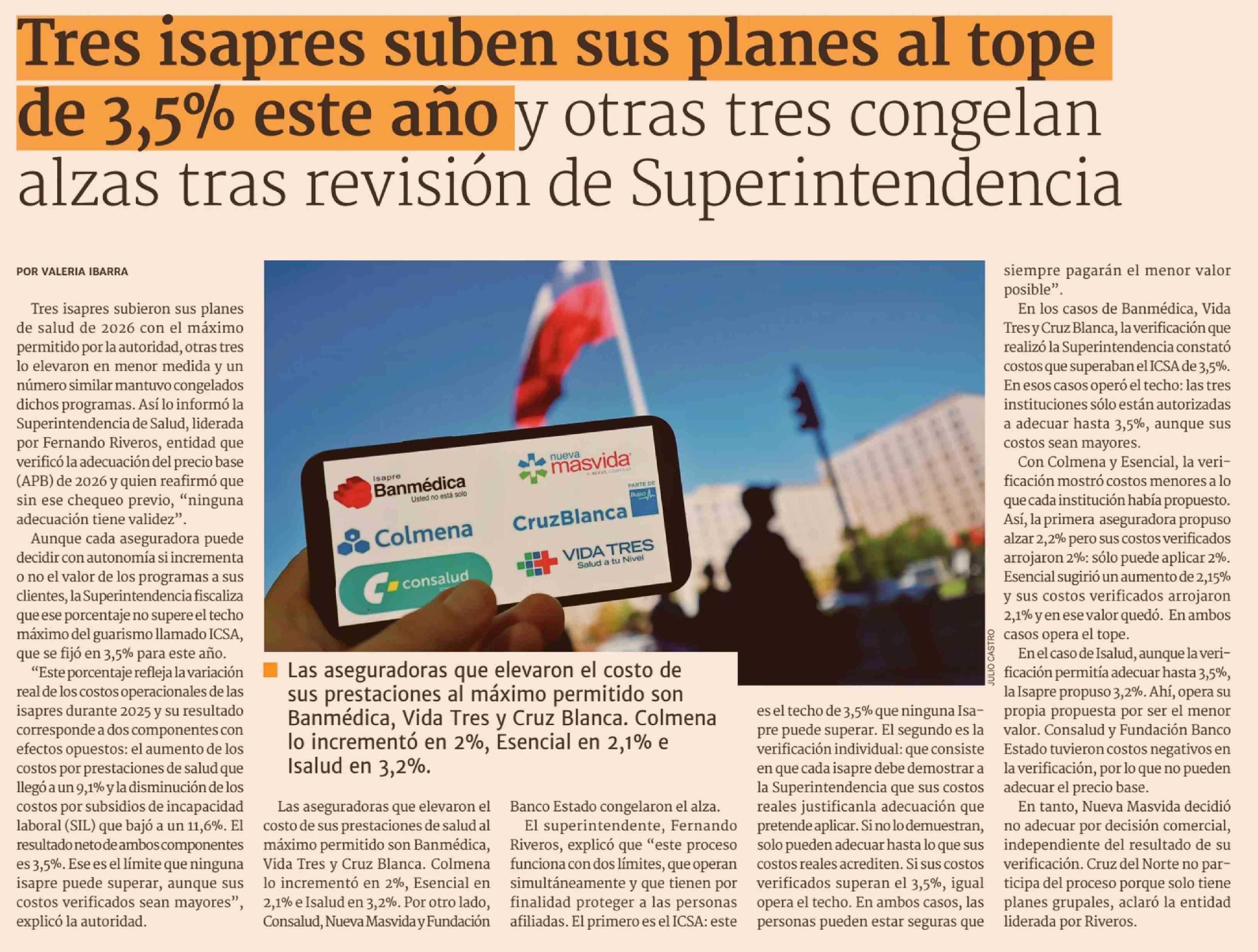 De 3,5% este año y otras tres congelan alzas tras revisión de Superintendencia
