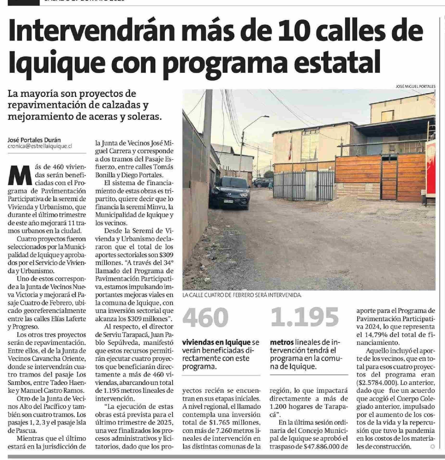 Intervendrán más de 10 calles de Iquique con programa estatal