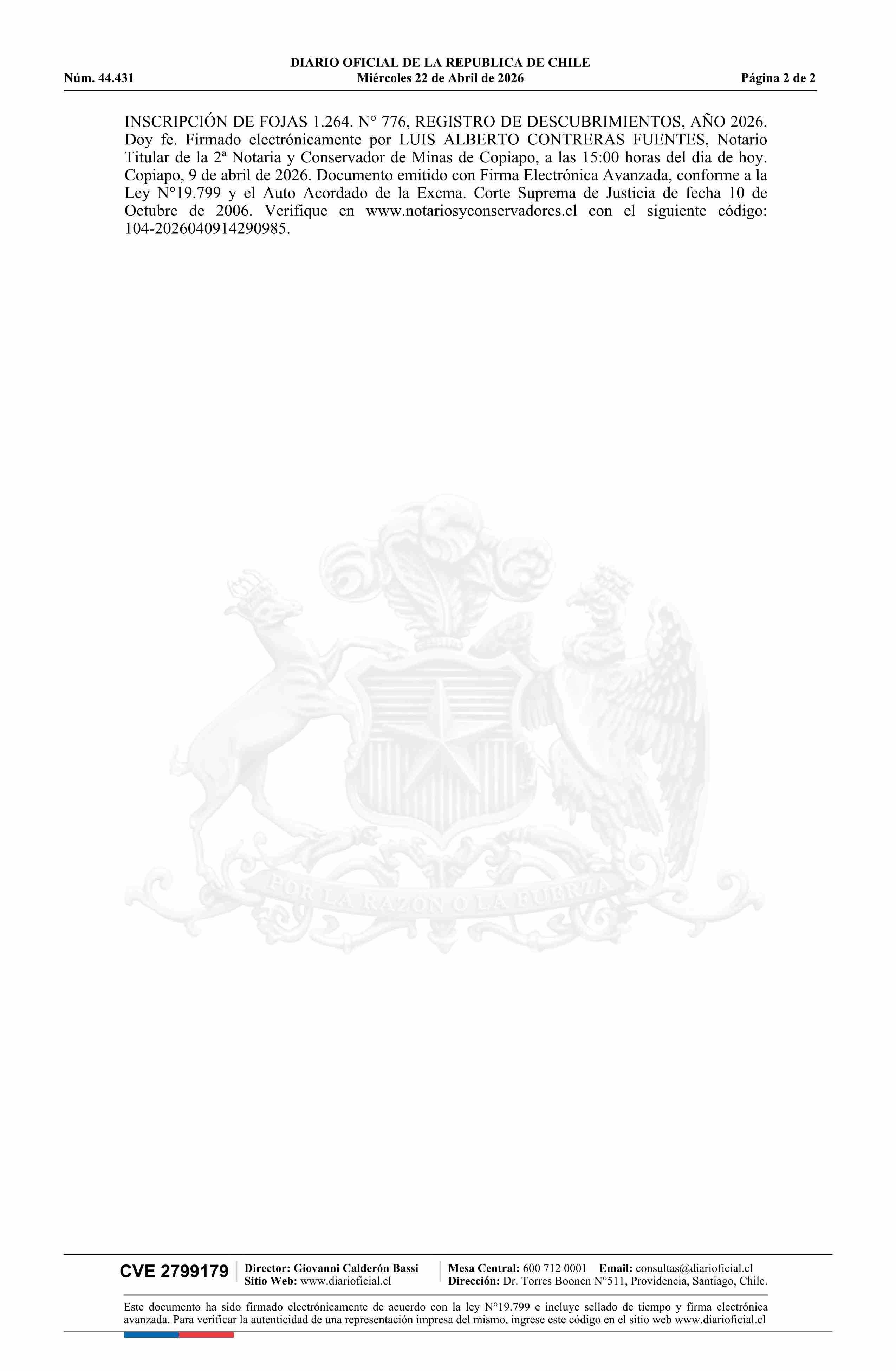 DIARIO OFICIAL CHILE - BOLETÍN OFICIAL DE MINERÍA (DIARIO OFICIAL CHILE – BOM – PEDIMENTOS MINEROS)