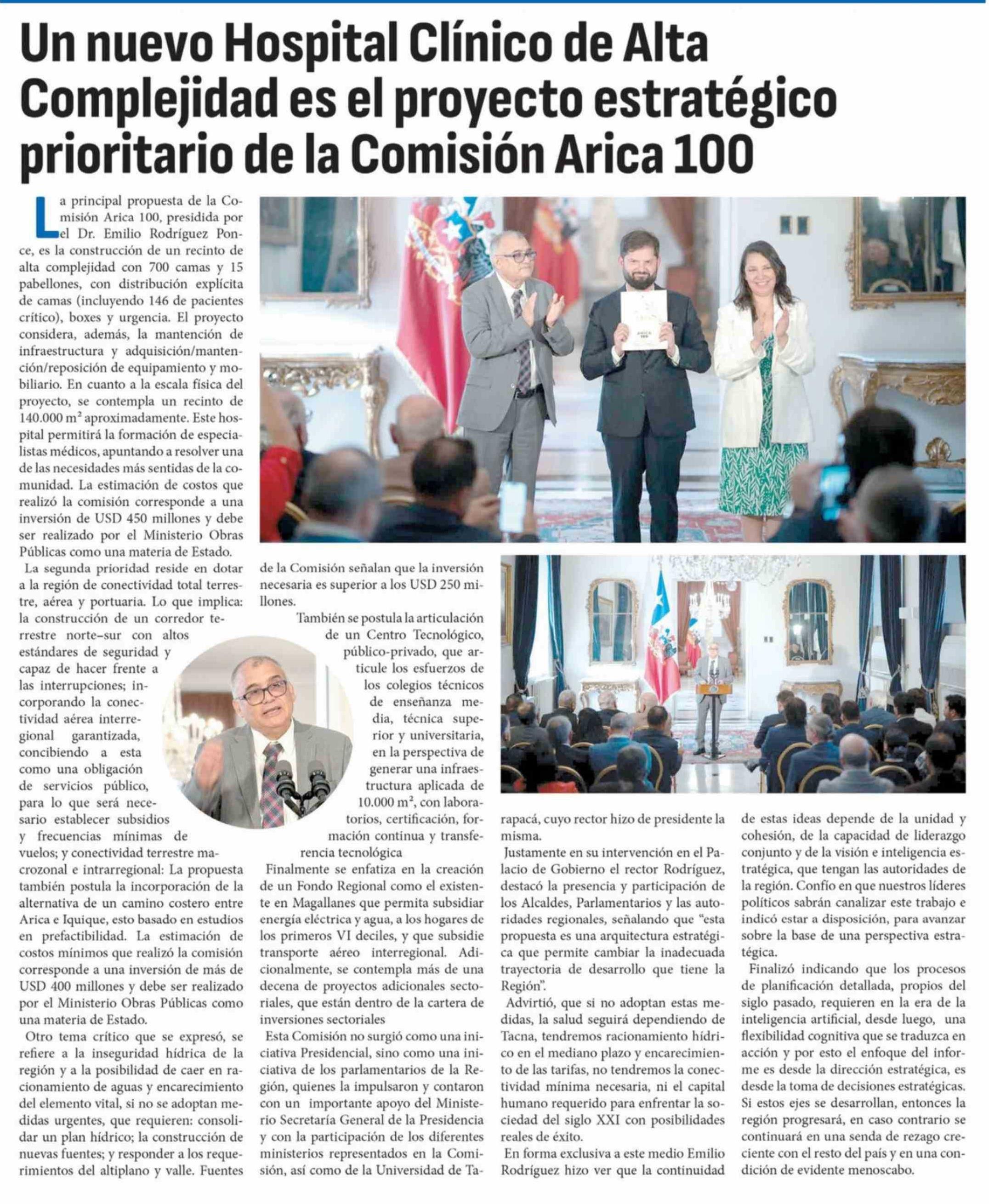 Un nuevo Hospital Clínico de Alta Complejidad es el proyecto estratégico prioritario de la Comisión Arica 100