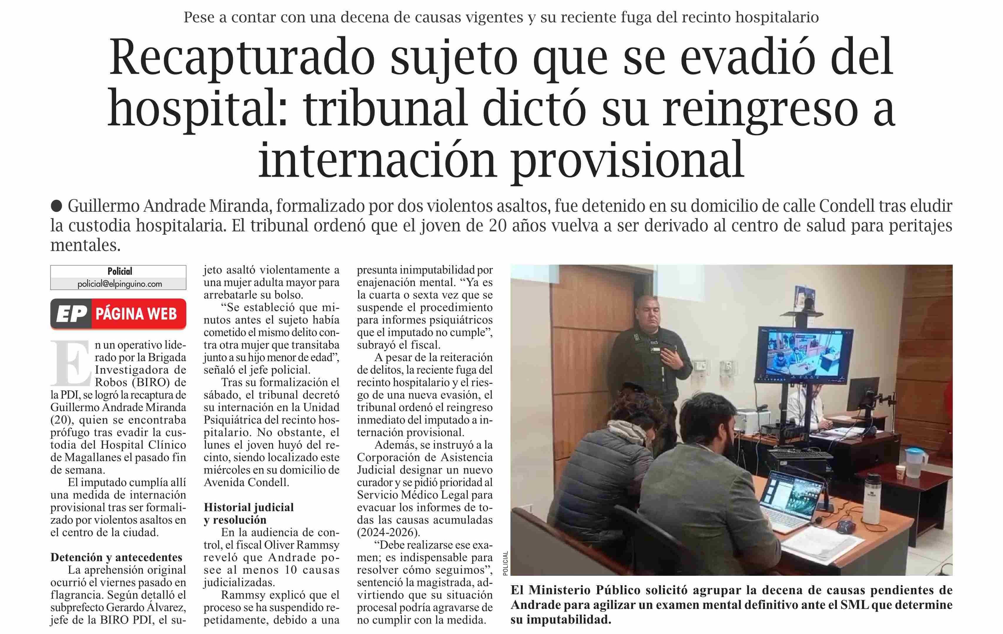 Recapturado sujeto que se evadió del hospital: tribunal dictó su reingreso a internación provisional
