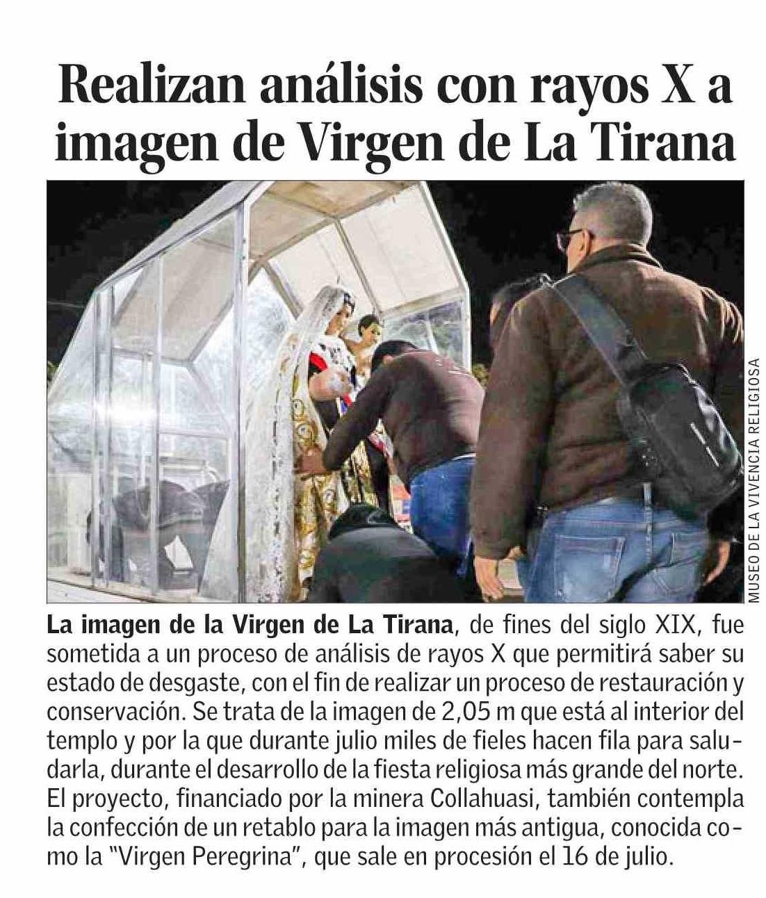 Realizan análisis con rayos X a imagen de Virgen de La Tirana