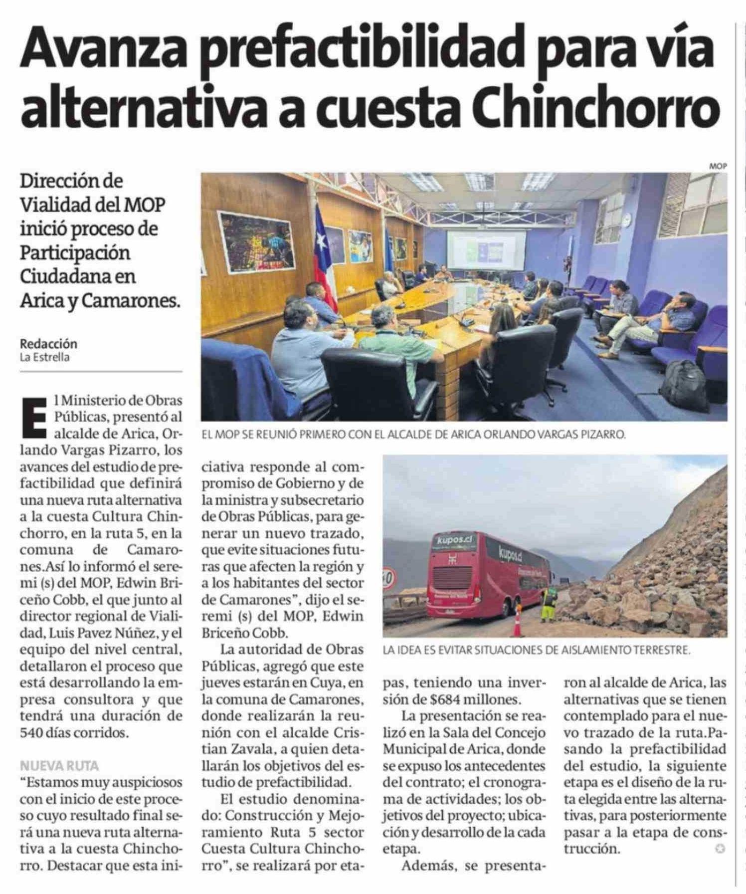 Avanza prefactibilidad para vía alternativa a cuesta Chinchorro