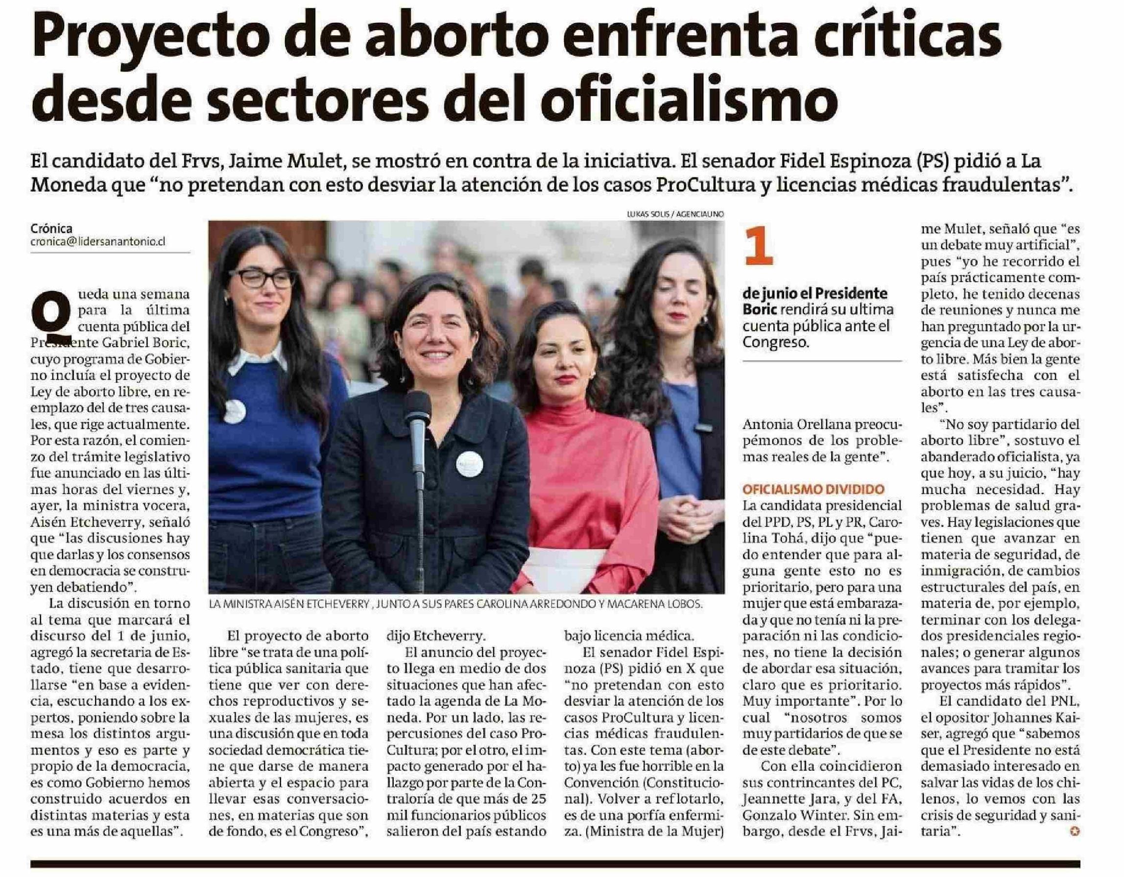 Proyecto de aborto enfrenta criticas desde sectores del oficialismo