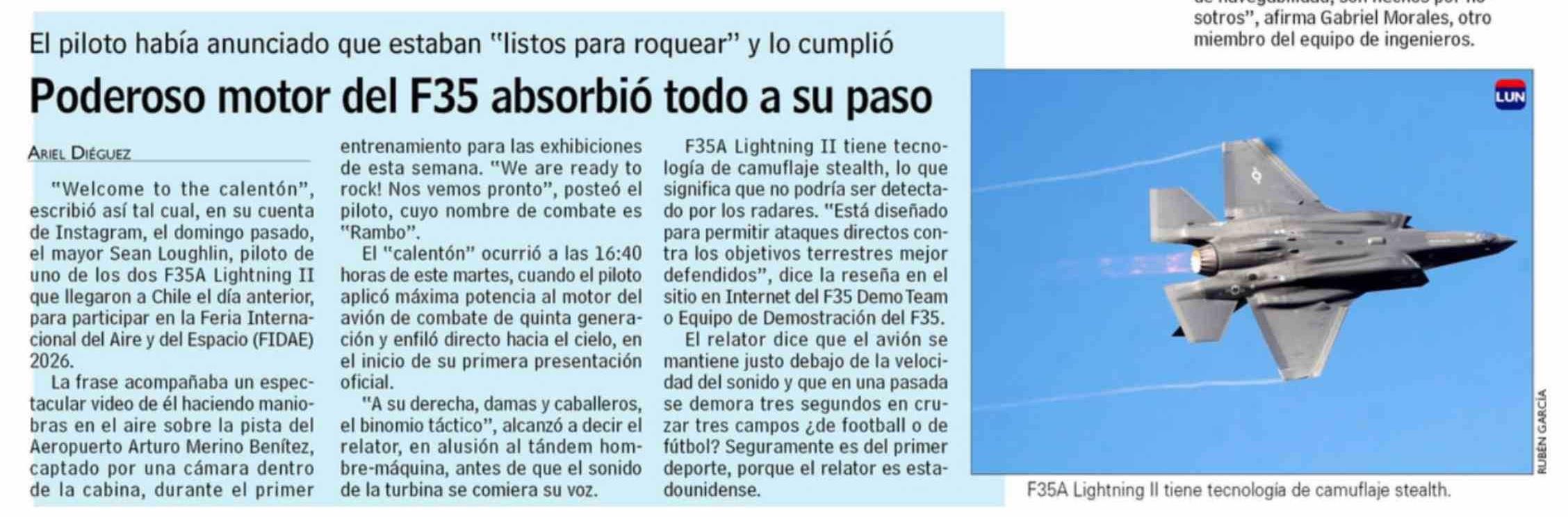 Poderoso motor del F35 absorbió todo a su paso