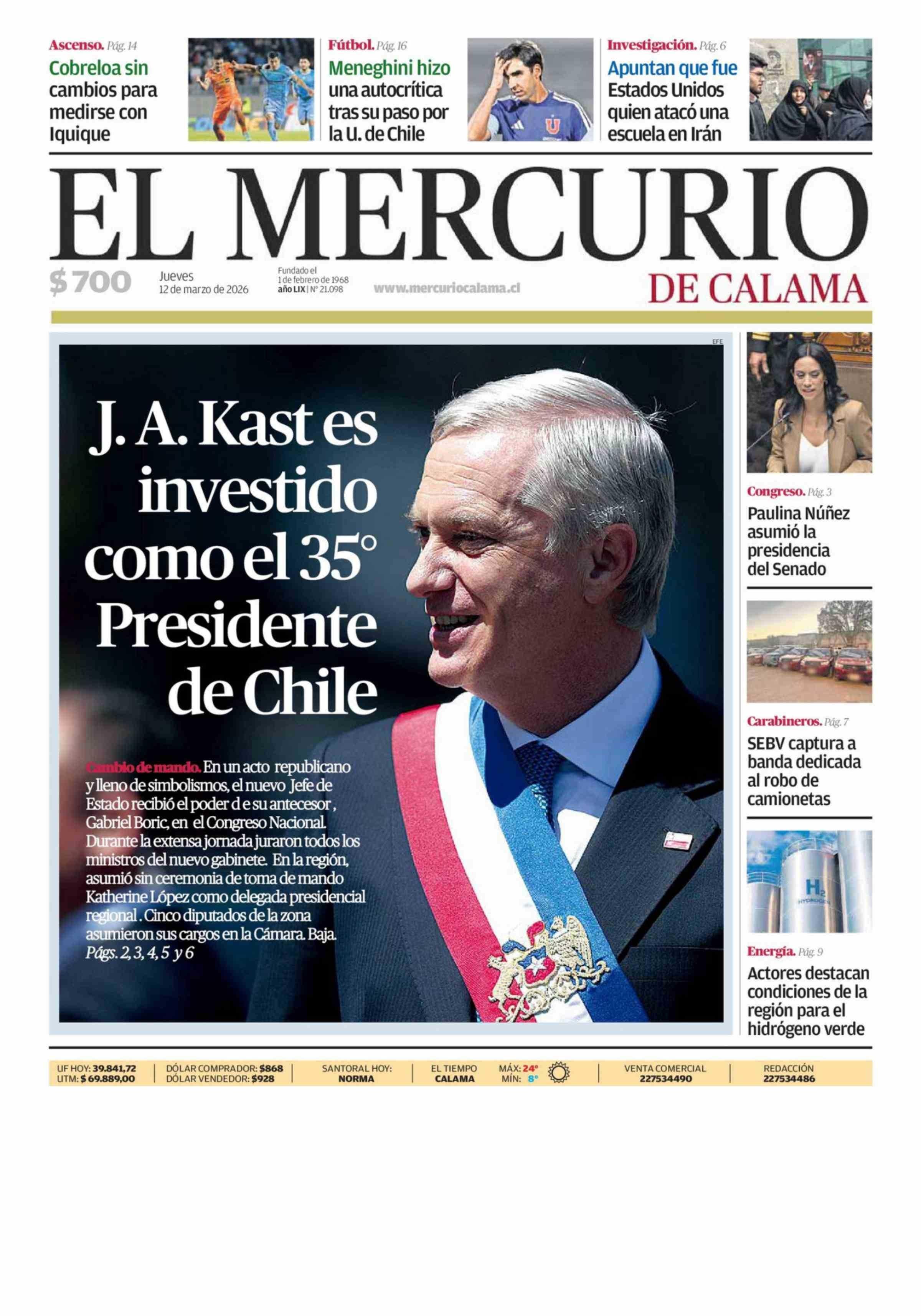 Fecha: 12-03-2026 Sector: Portada Región: Región de Antofagasta