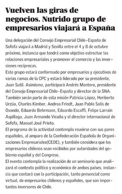Vuelven las giras de negocios. Nutrido grupo de empresarios viajará a España