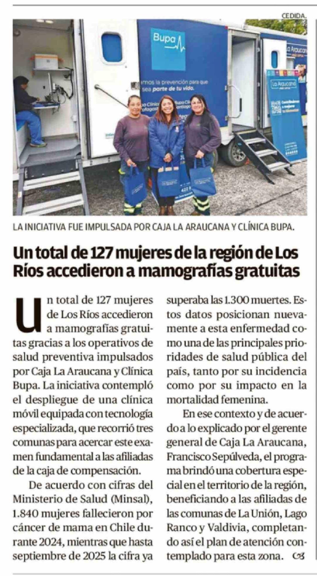 Un total de 127 mujeres de la región de Los Ríos accedieron a mamografías gratuitas
