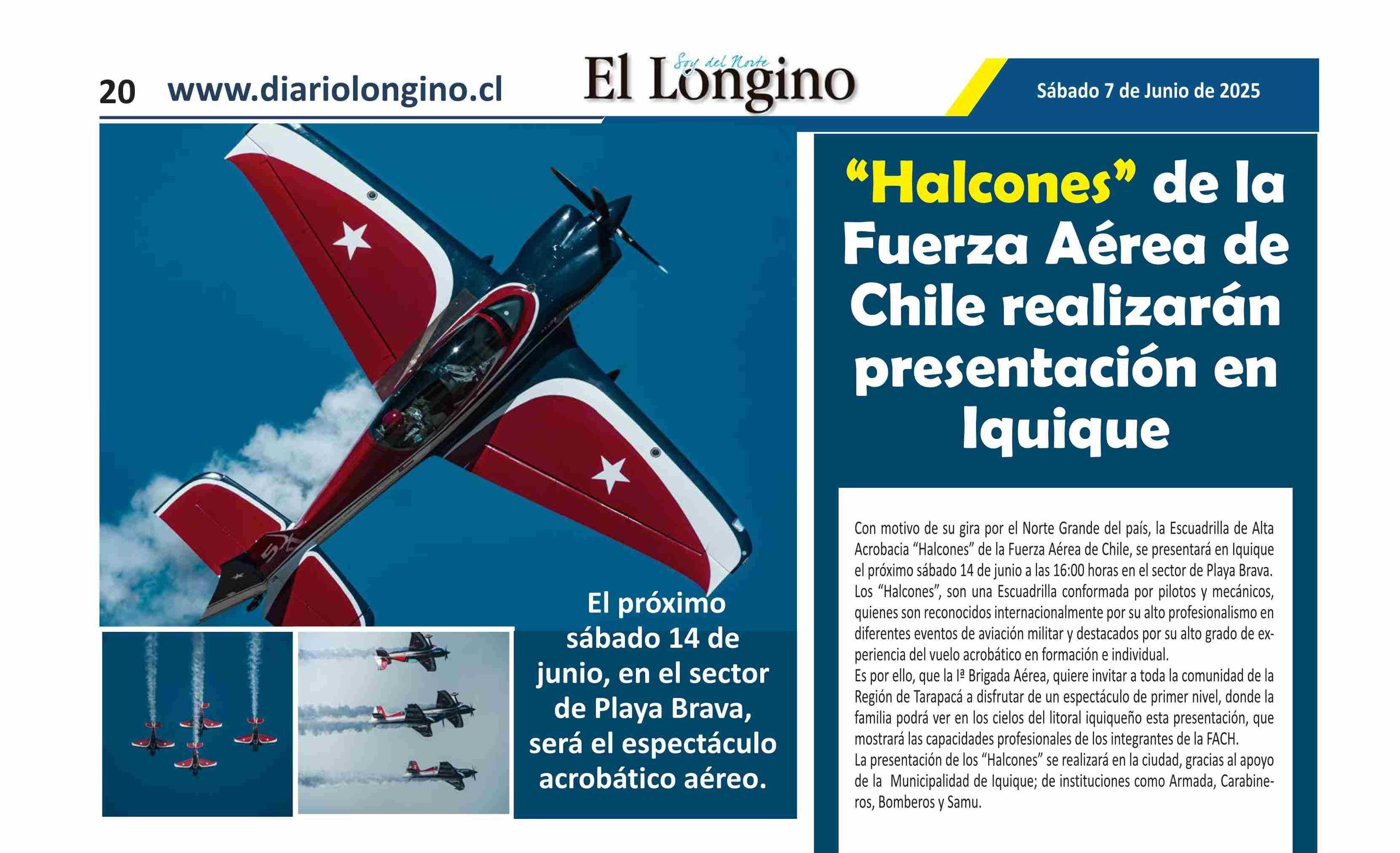 “Halcones” de la Fuerza Aérea de Chile realizarán presentación en Iquique