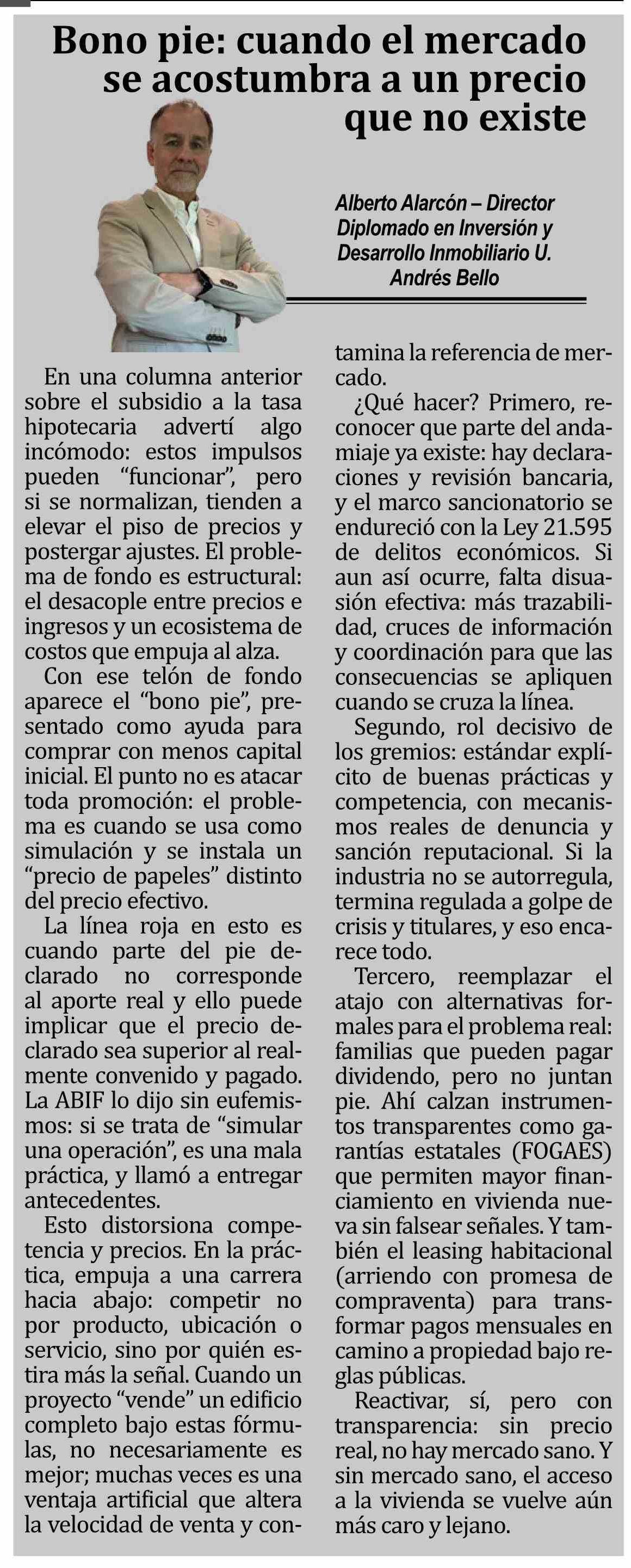 Columnas de Opinión: Bono pie: cuando el mercado se acostumbra a un precio que no existe
