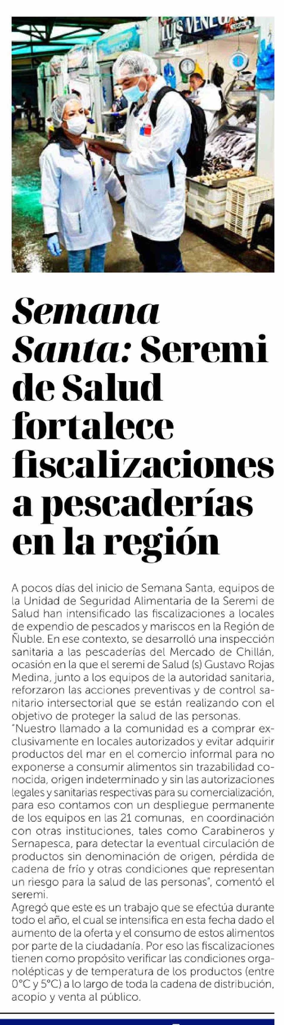 Semana Santa: Seremi de Salud fortalece fiscalizaciones a pescaderías en la región