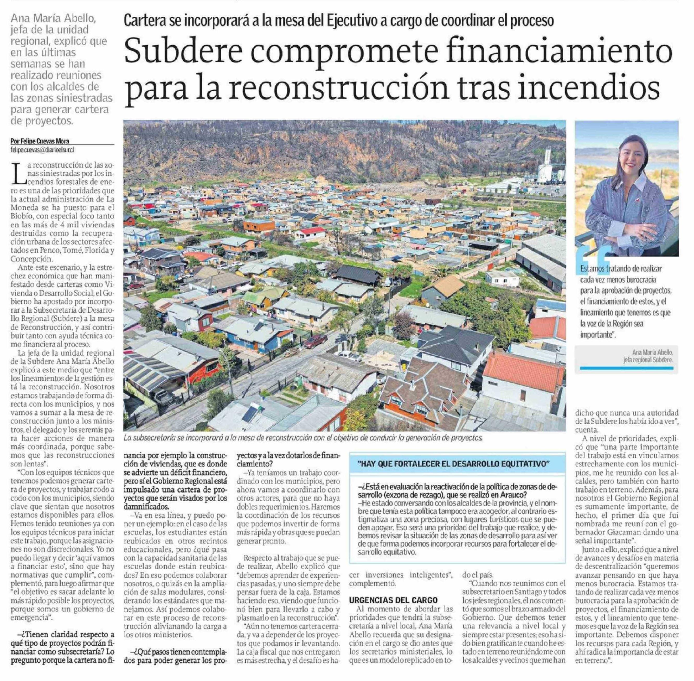 Subdere compromete financiamiento para la reconstrucción tras incendios