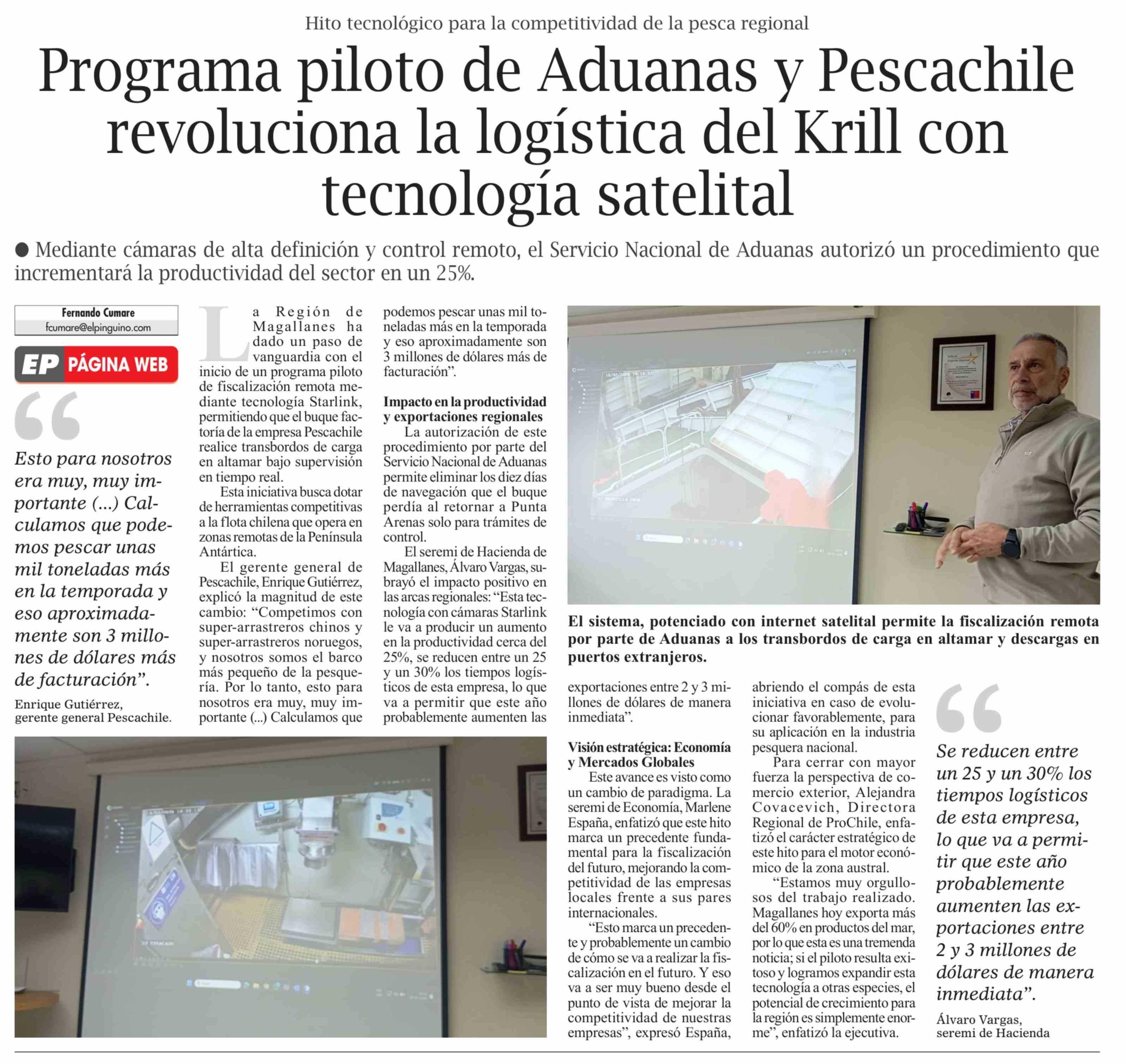 Programa piloto de Aduanas y Pescachile revoluciona la logística del Krill con tecnología satelital