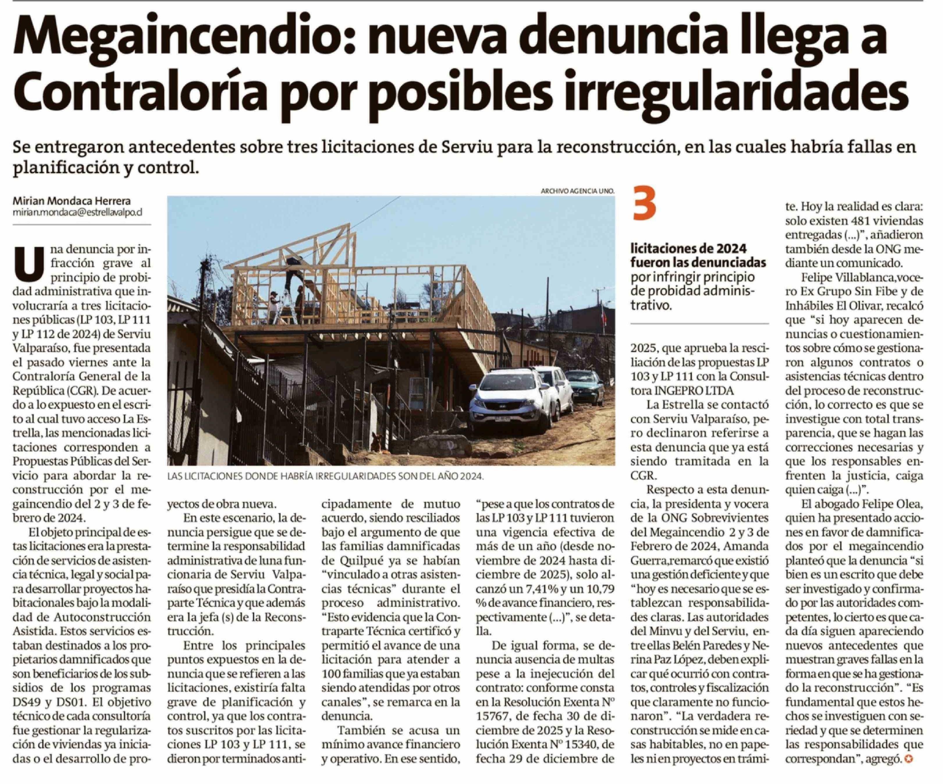 Megaincendio: nueva denuncia llega a Contraloría por posibles irregularidades