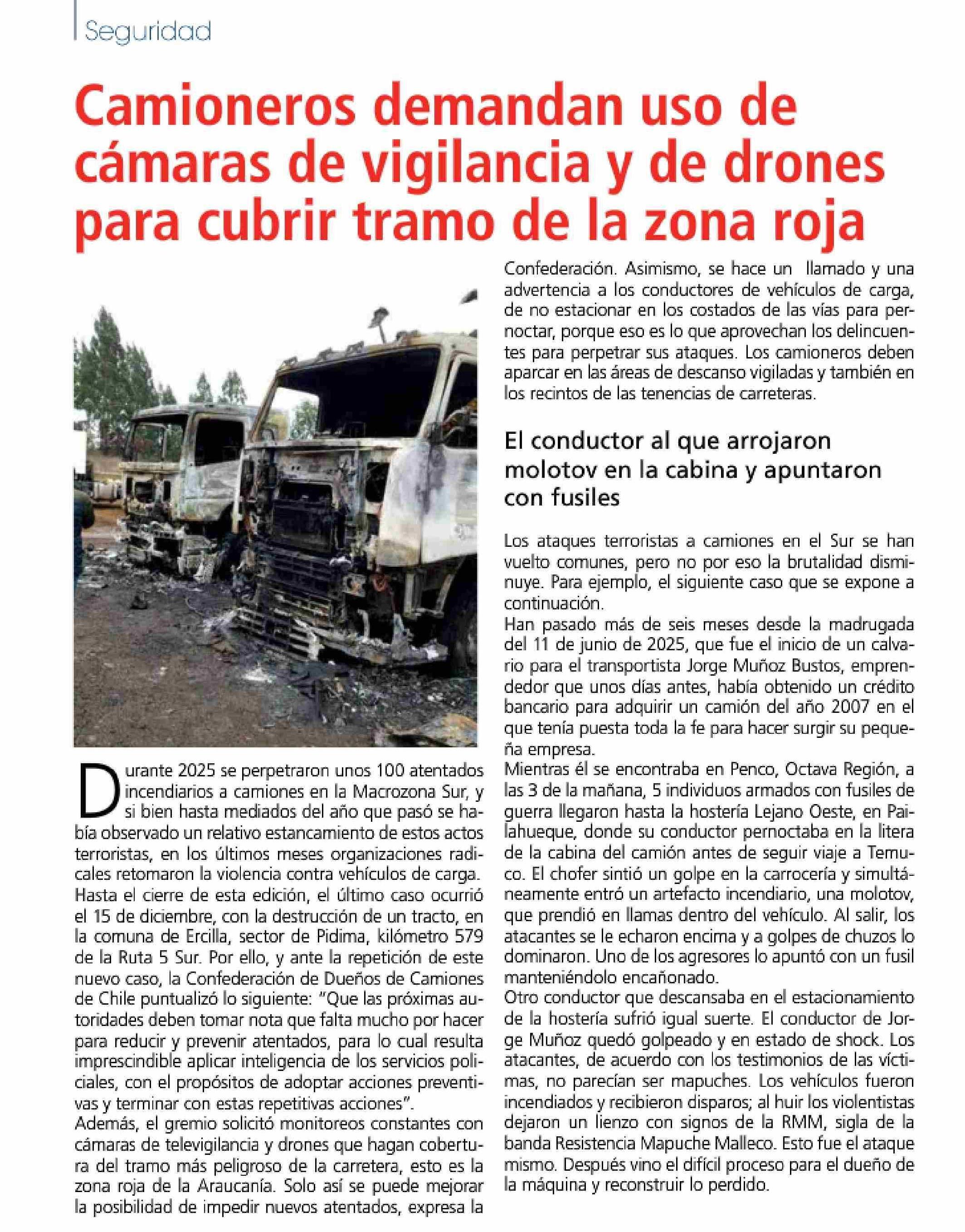 Camioneros demandan uso de cámaras de vigilancia y de drones para cubrir tramo de la zona roja