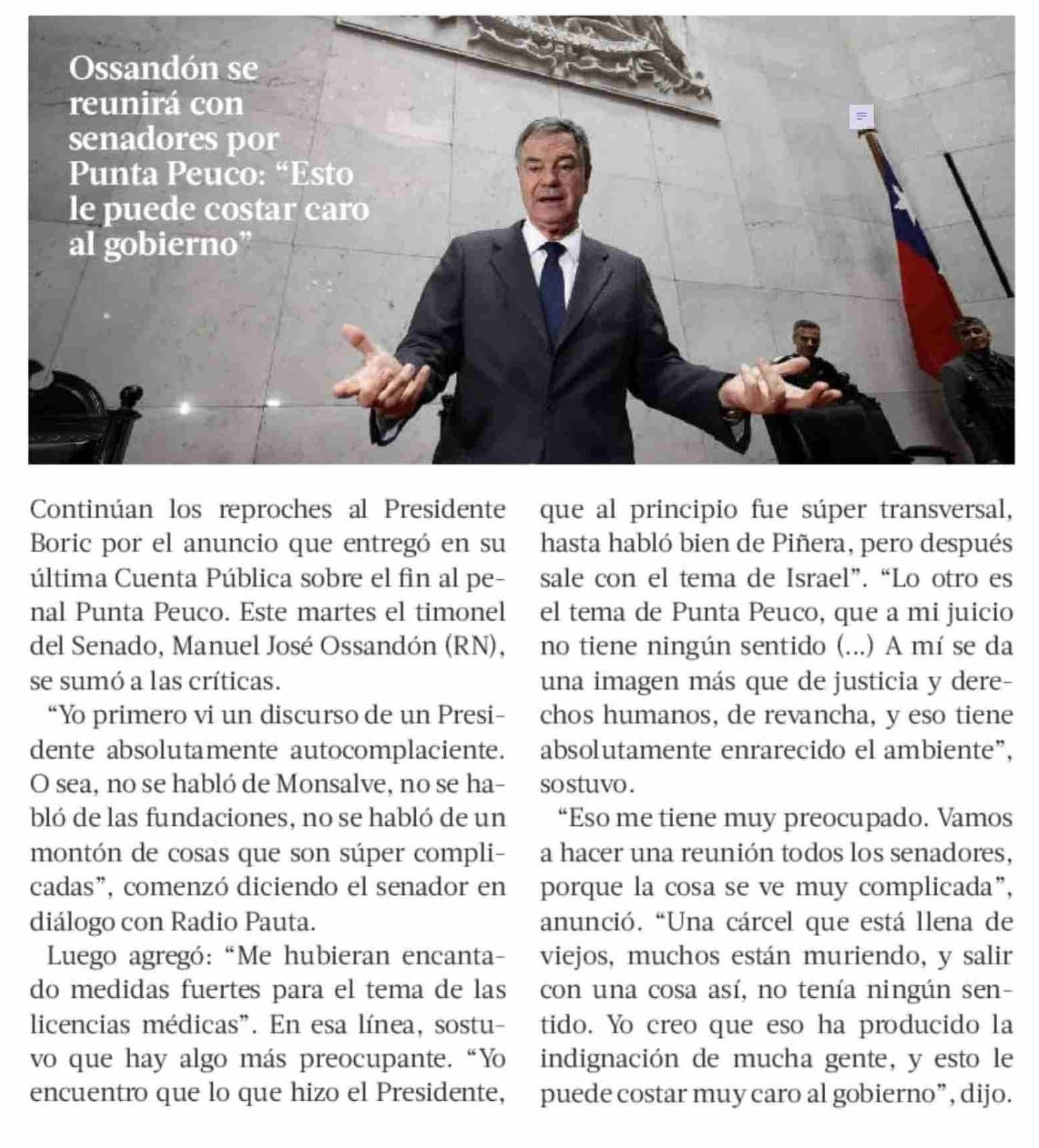 Ossandón se reunirá con senadores por Punta Peuco:'Esto le puede costar caro al gobierno”