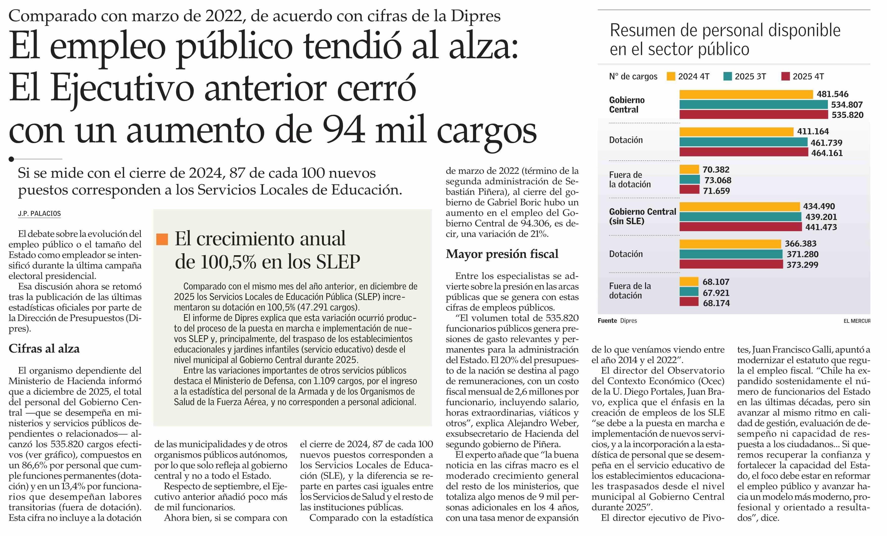 Título: El empleo público tendió al alza: El Ejecutivo anterior cerró con un aumento de 94 mil cargos