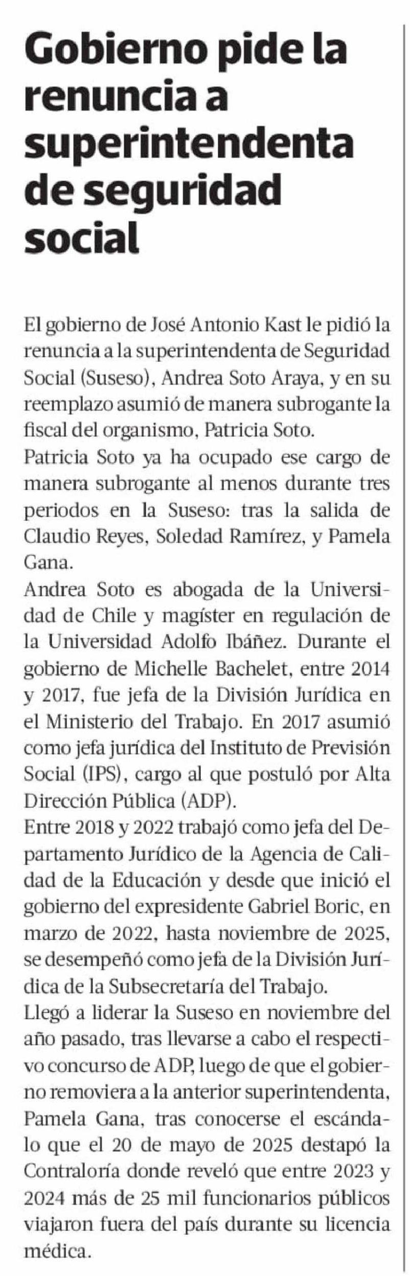 Gobierno pide la renuncia a superintendenta de seguridad social