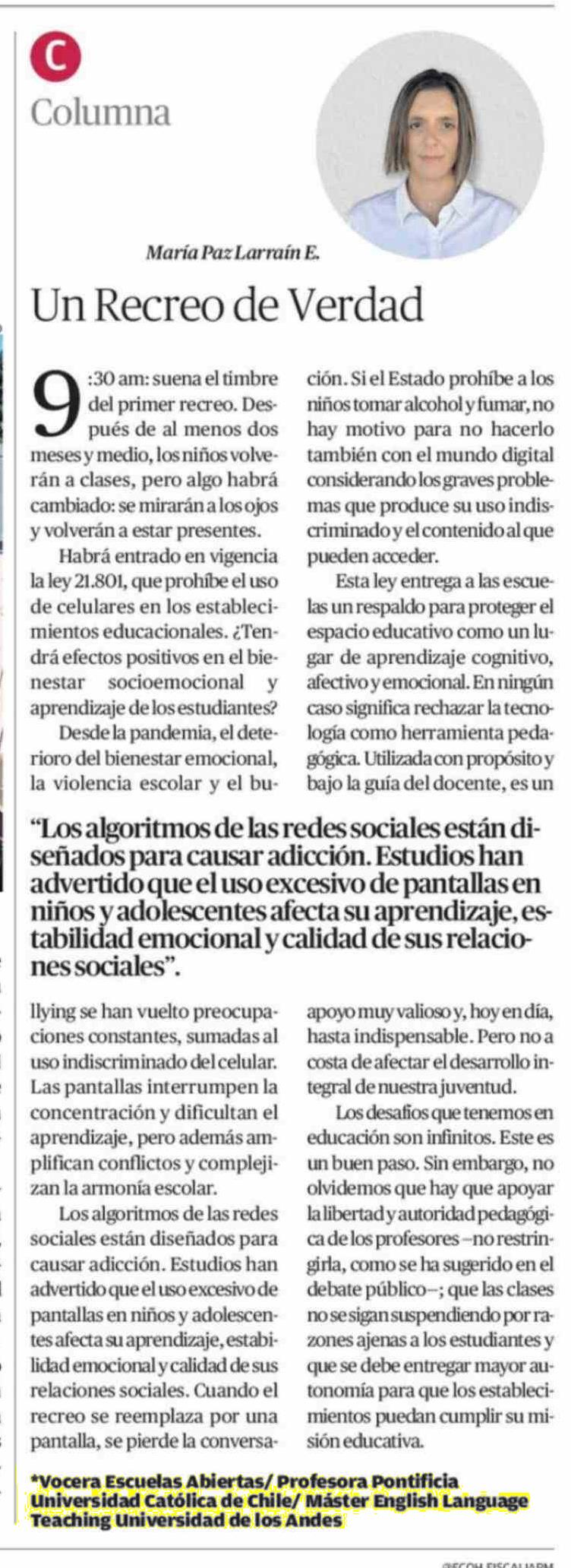 Título: Columnas de Opinión: Un Recreo de Verdad
