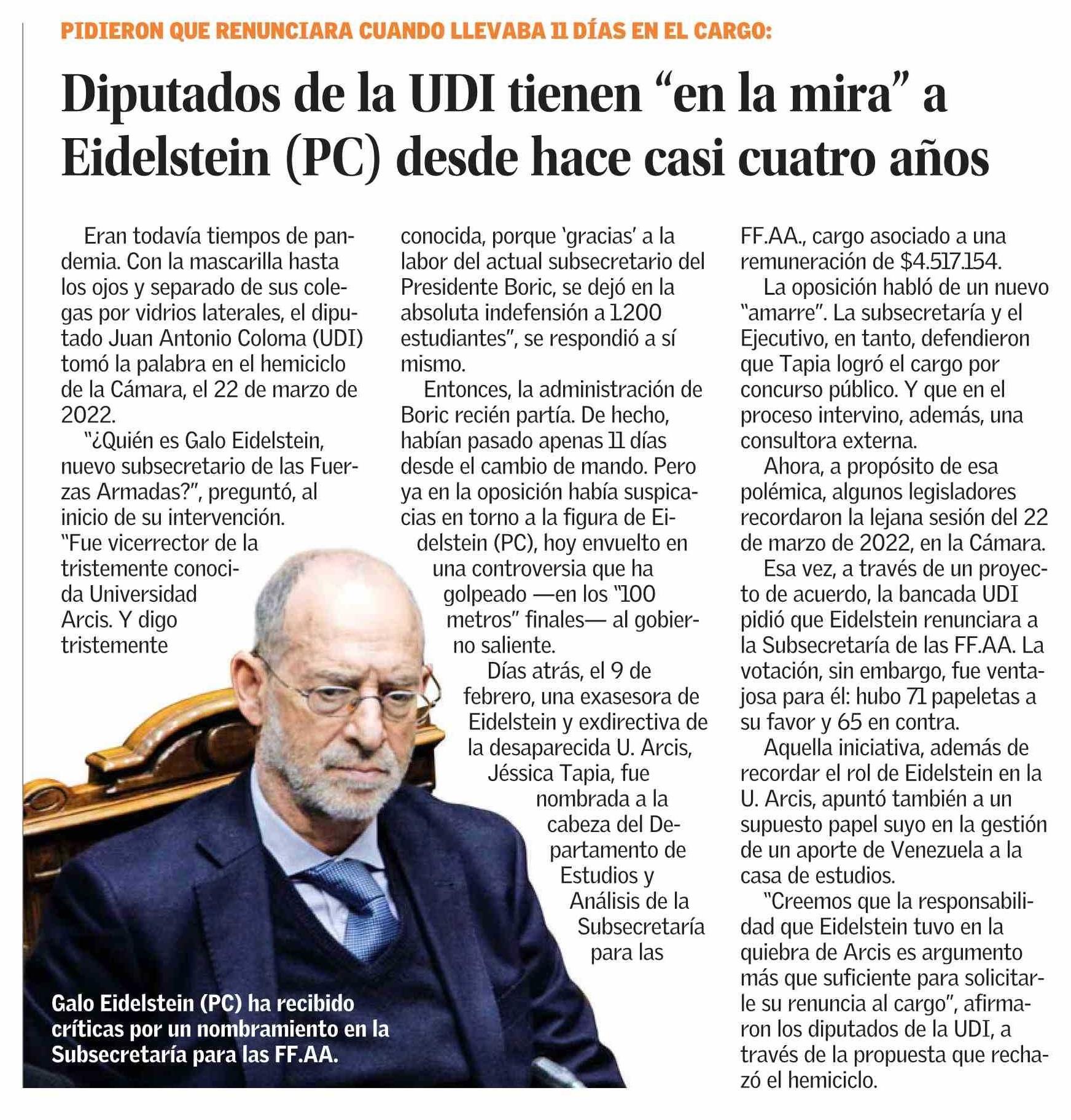 Diputados de la UDI tienen “en la mira” a Eidelstein (PC) desde hace casi cuatro años