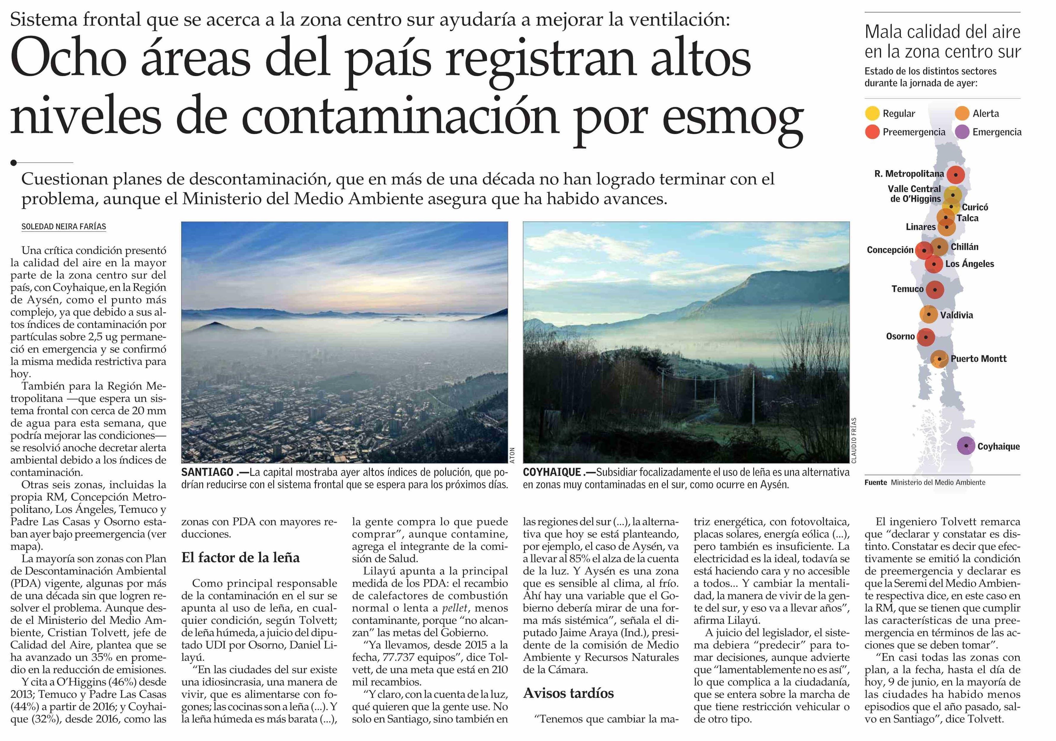 Ocho áreas del país registran altos niveles de contaminación por esmog