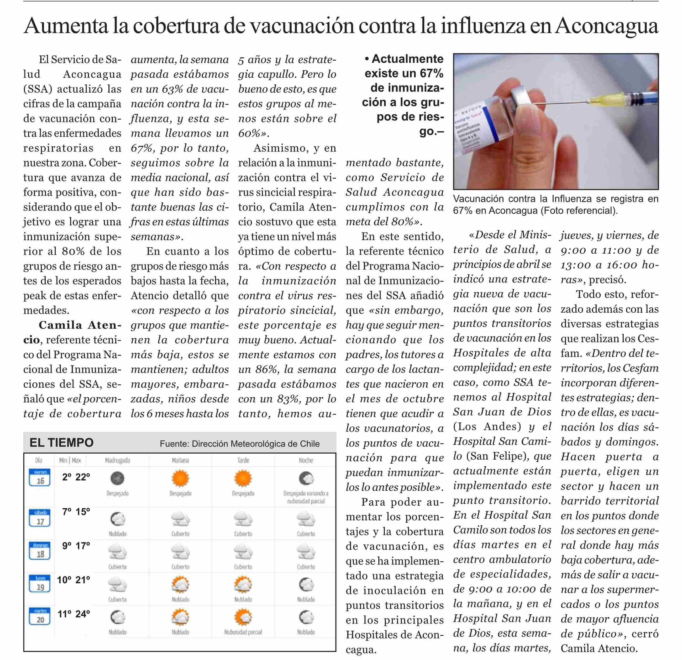 Aumenta la cobertura de vacunación contra la influenza en Aconcagua