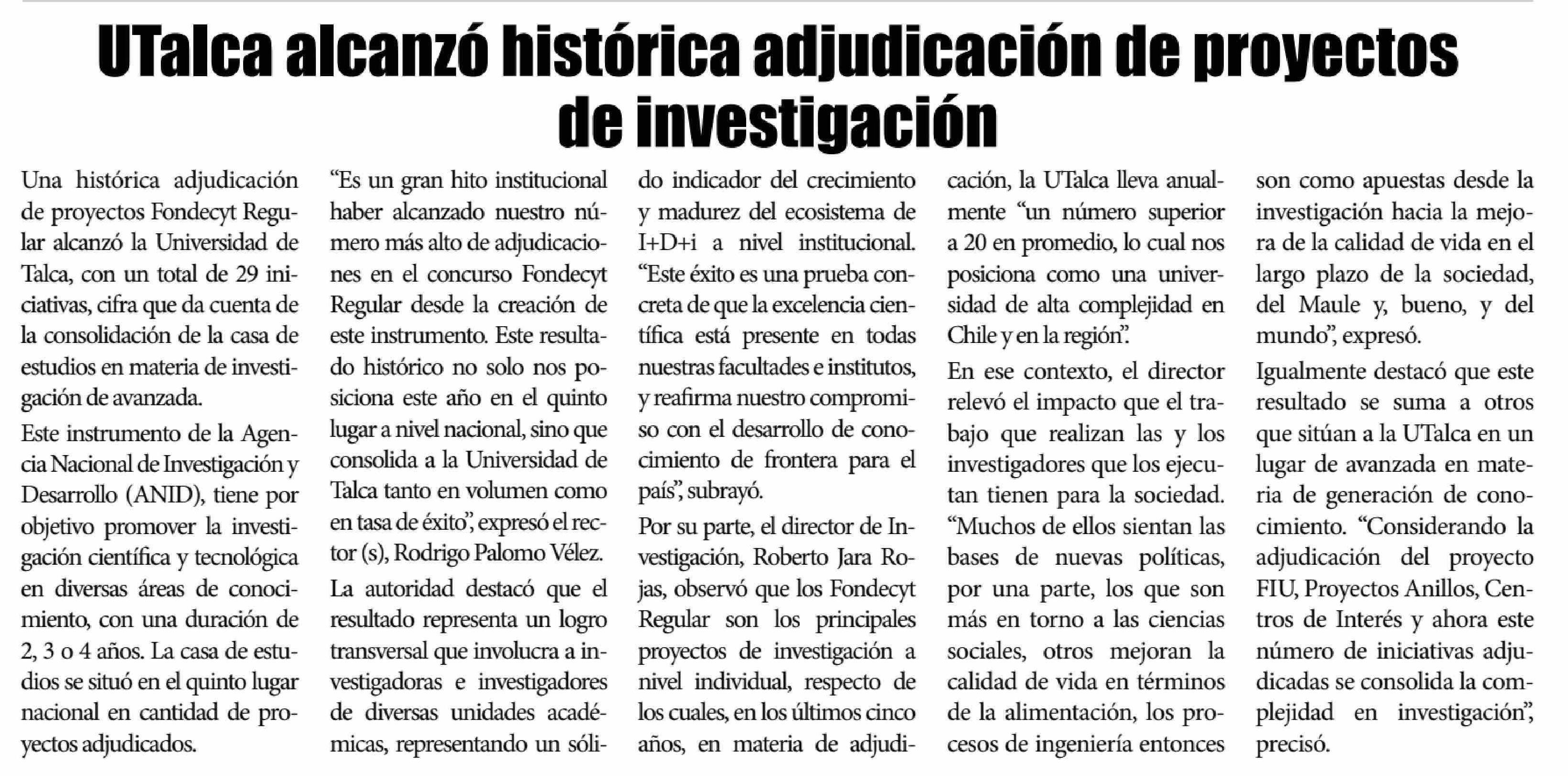 Título: UTalca alcanzó histórica adjudicación de proyectos de investigación