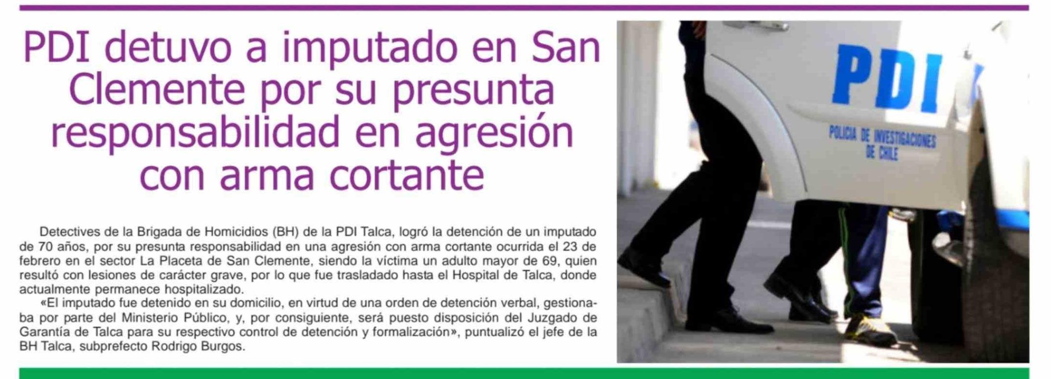 PDI detuvo a imputado en San Clemente por su presunta responsabilidad en agresión con arma cortante