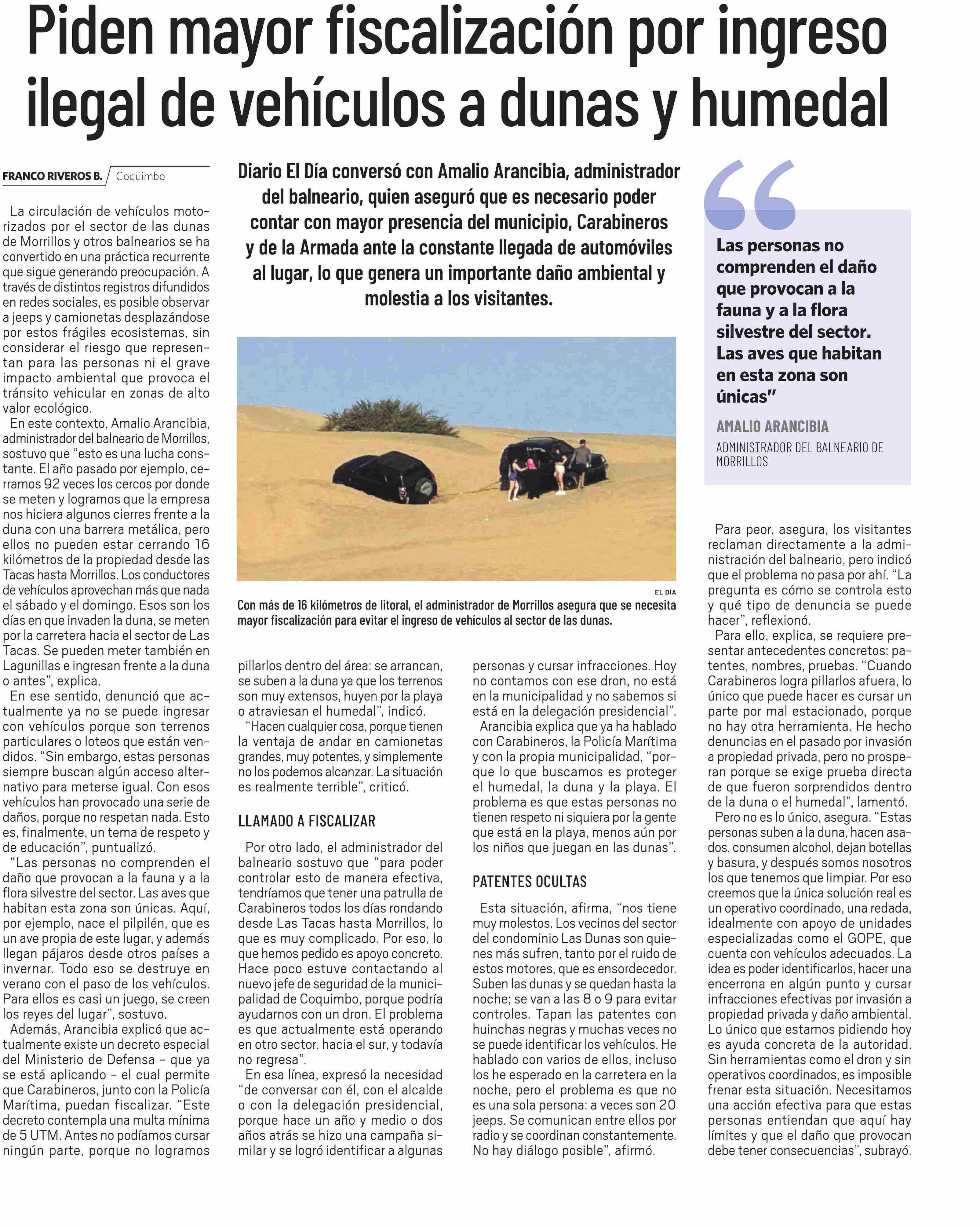 Piden mayor fiscalización por ingreso Ilegal de vehículos a dunas y humedal