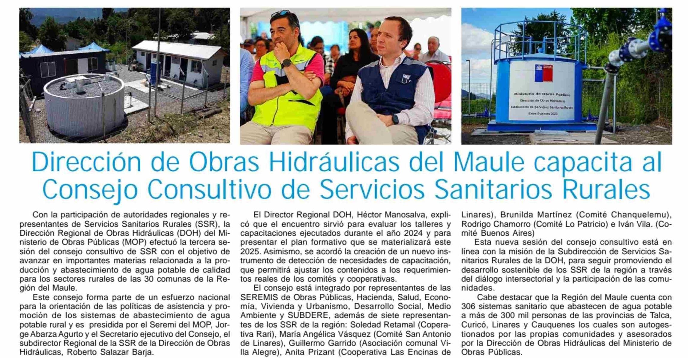 Dirección de Obras Hidráulicas del Maule capacita al Consejo Consultivo de Servicios Sanitarios Rurales
