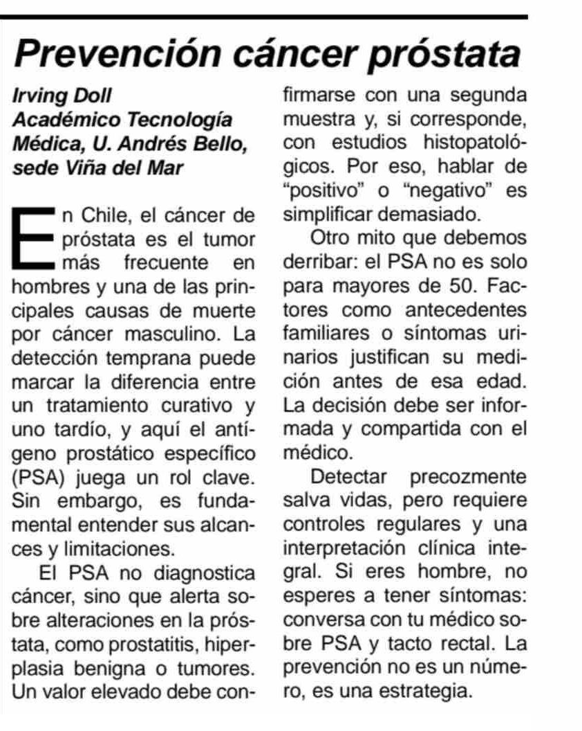 Título: COLUMNAS DE OPINIÓN: Prevención cáncer próstata