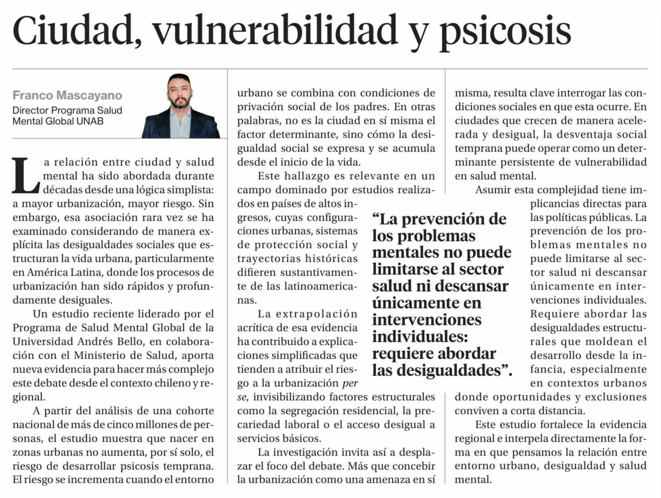 Columnas de Opinión: Ciudad, vulnerabilidad y psicosis