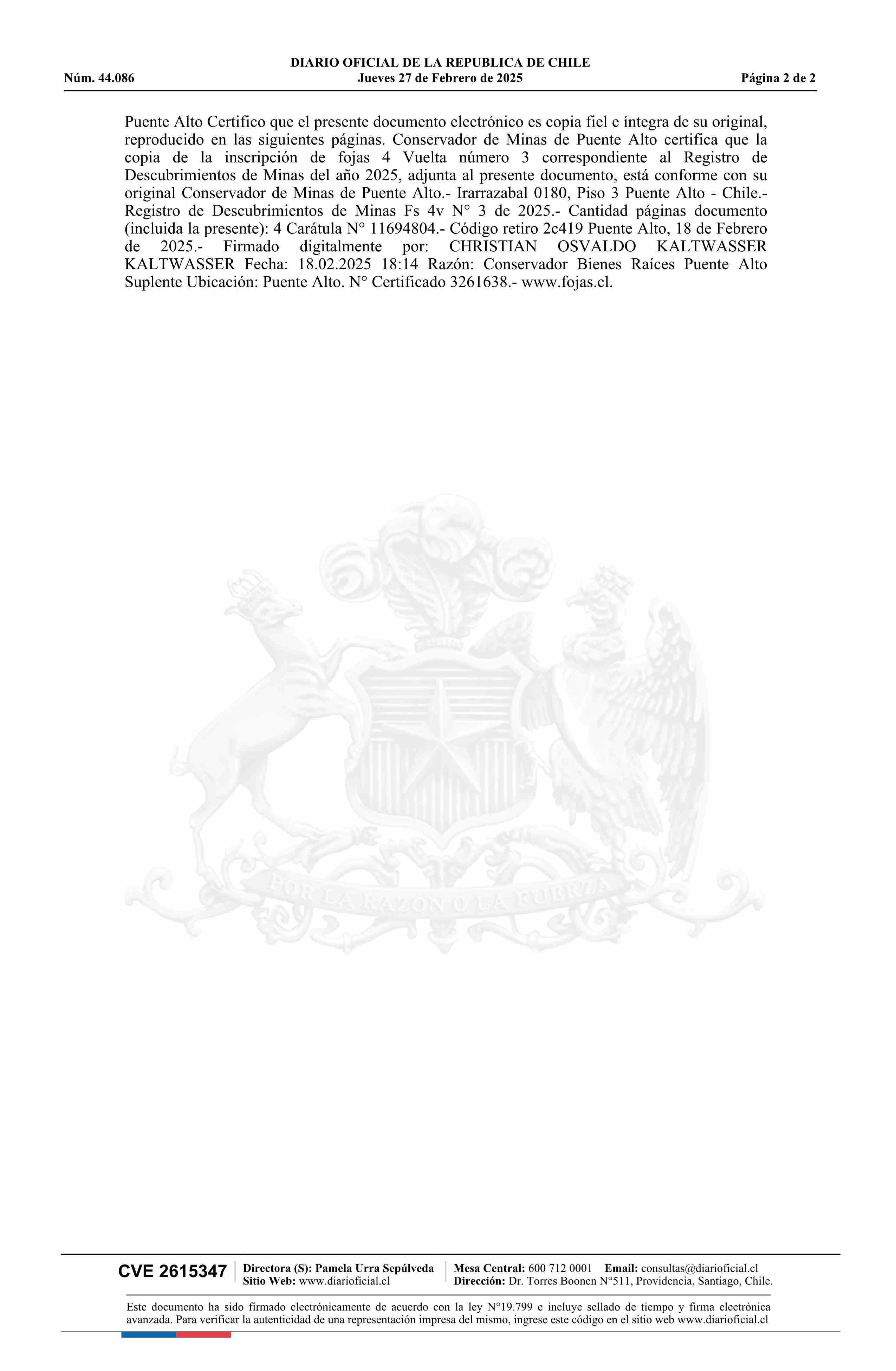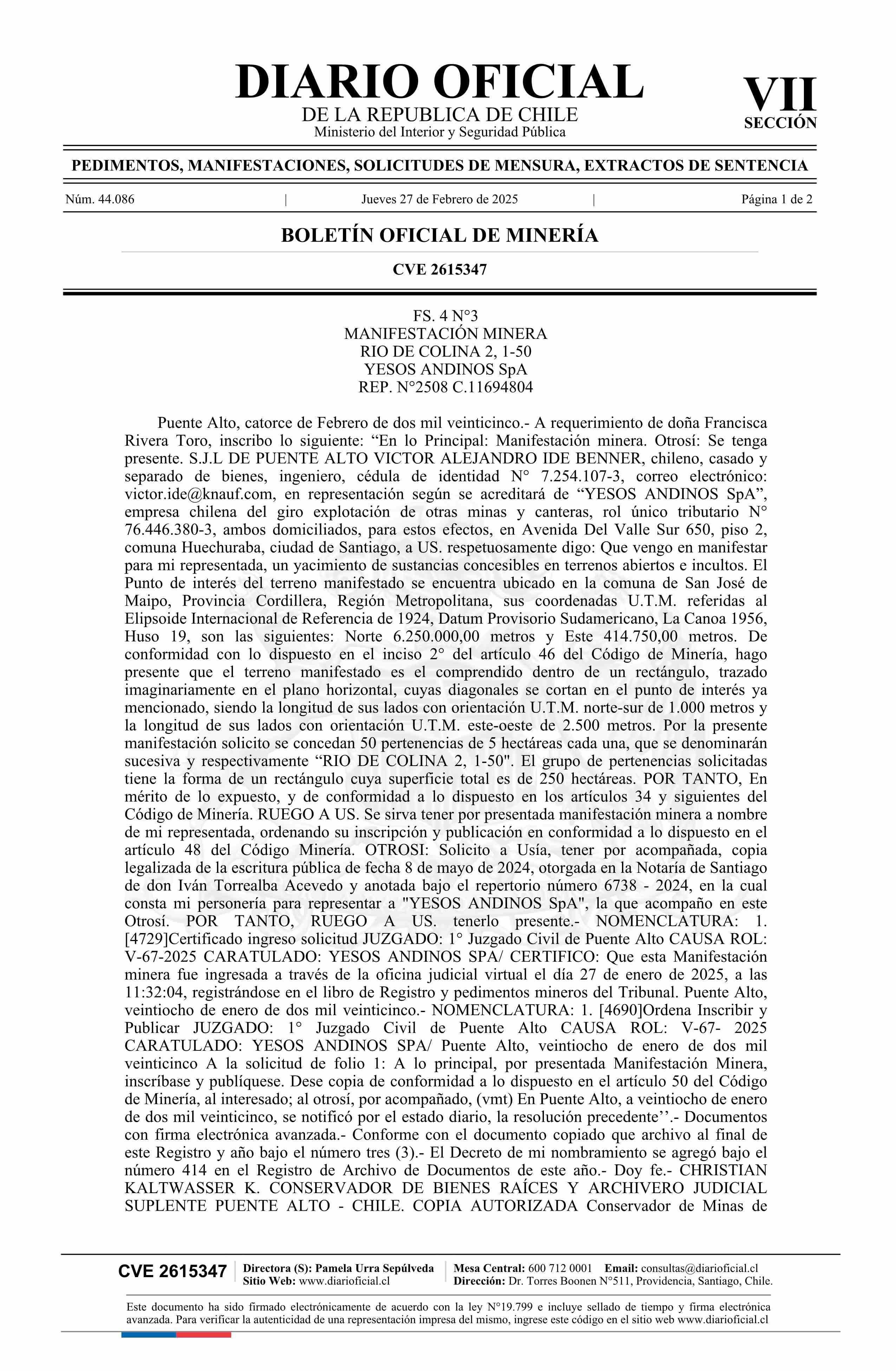 DIARIO OFICIAL CHILE - BOLETÍN OFICIAL DE MINERÍA (DIARIO OFICIAL CHILE – BOM – MANIFESTACIONES MIN)