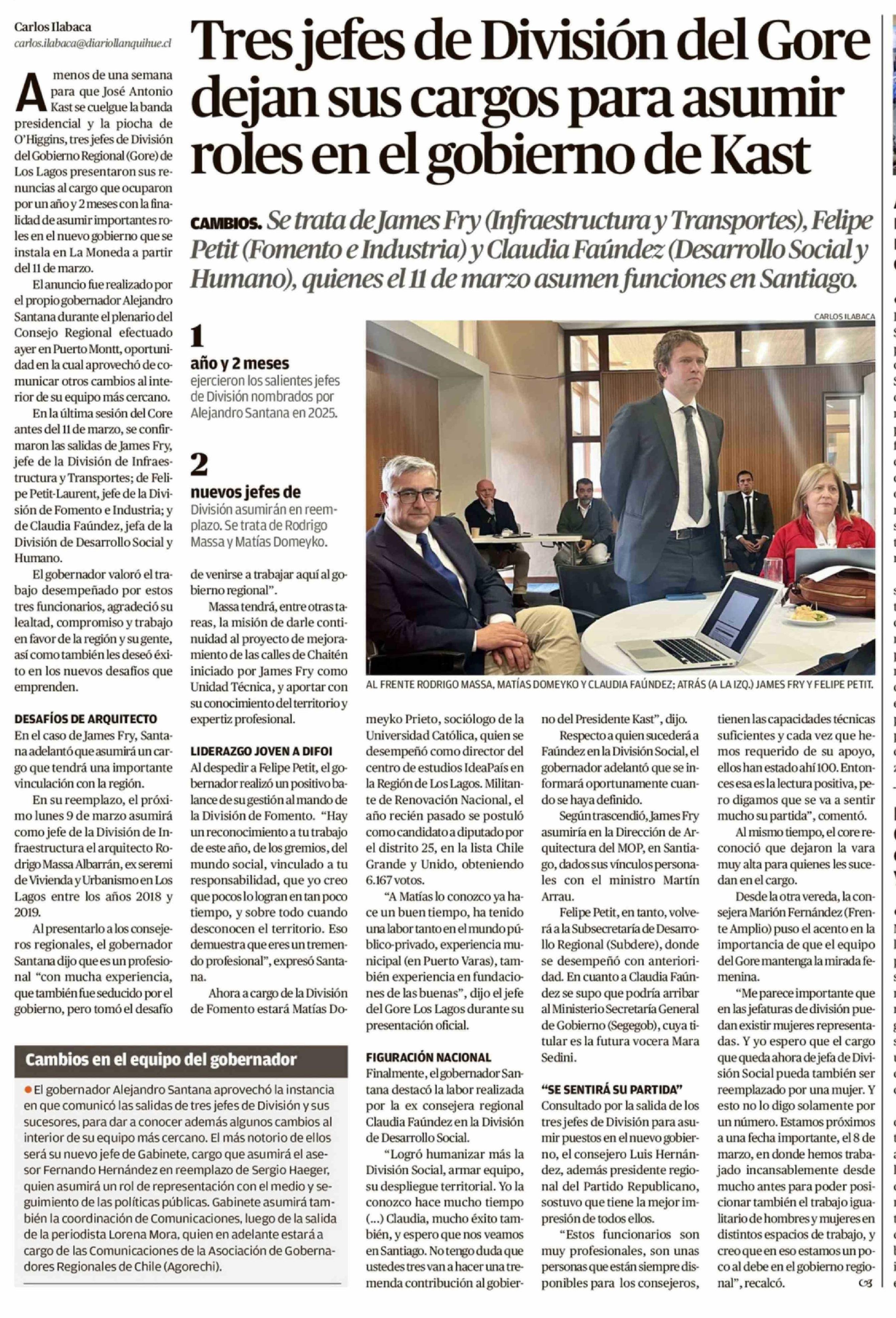Tres jefes de División del Gore dejan sus cargos para asumir roles en el gobierno de Kast