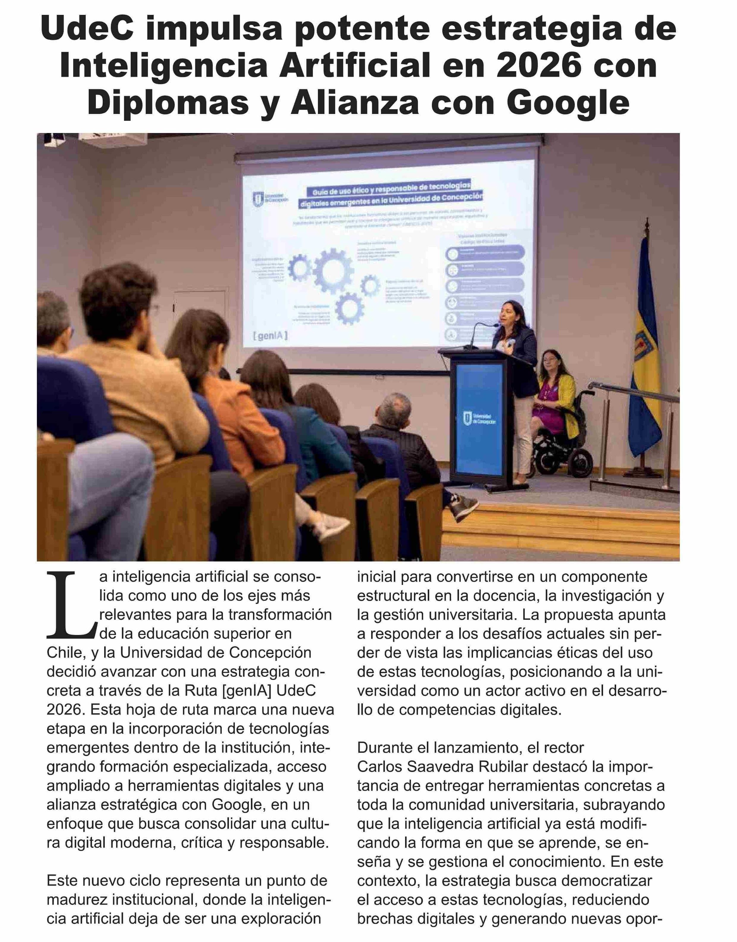 | Título: | UdeC impulsa potente estrategia de Inteligencia Artificial en 2026 con Diplomas yv Alianza con Goodle |