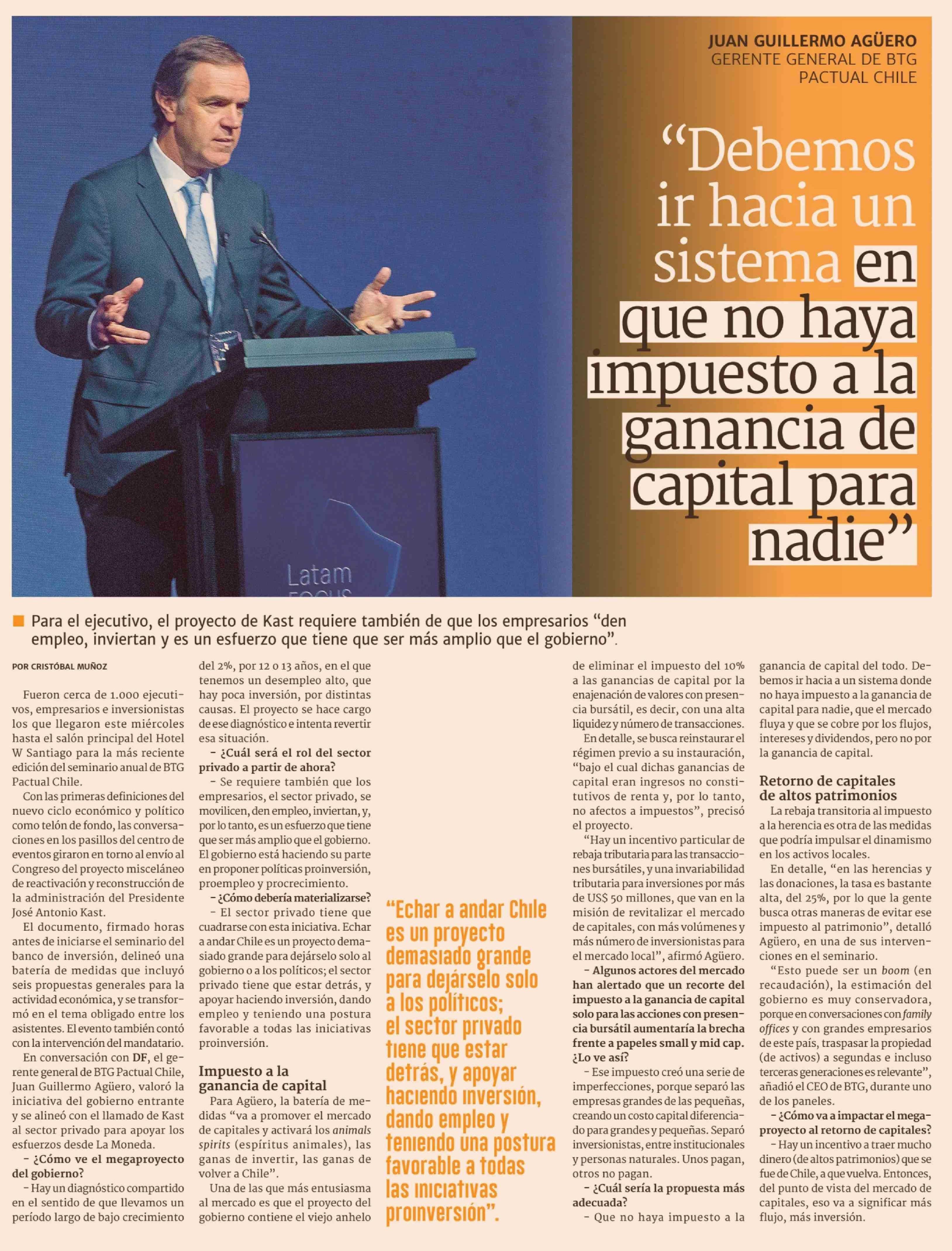 "Debemos ir hacia un sistema en que no haya impuesto a la ganancia de capital para nadie"