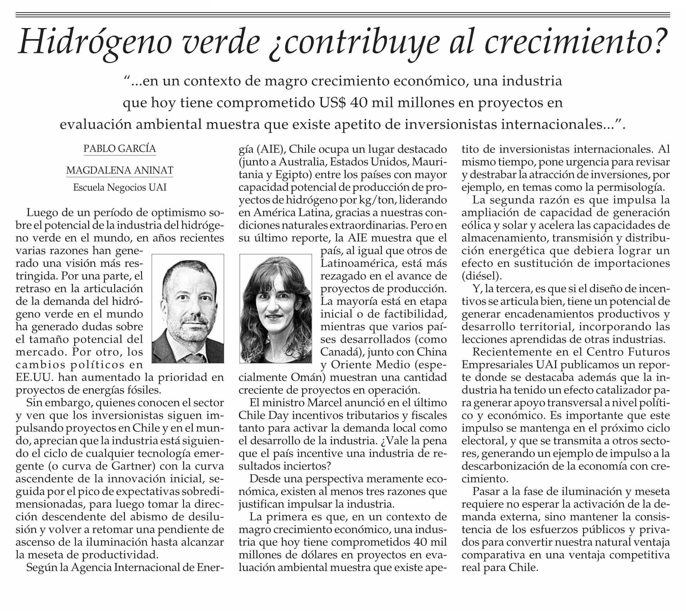Título: COLUMNAS DE OPINIÓN: Hidrógeno verde ¿contribuye al crecimiento?