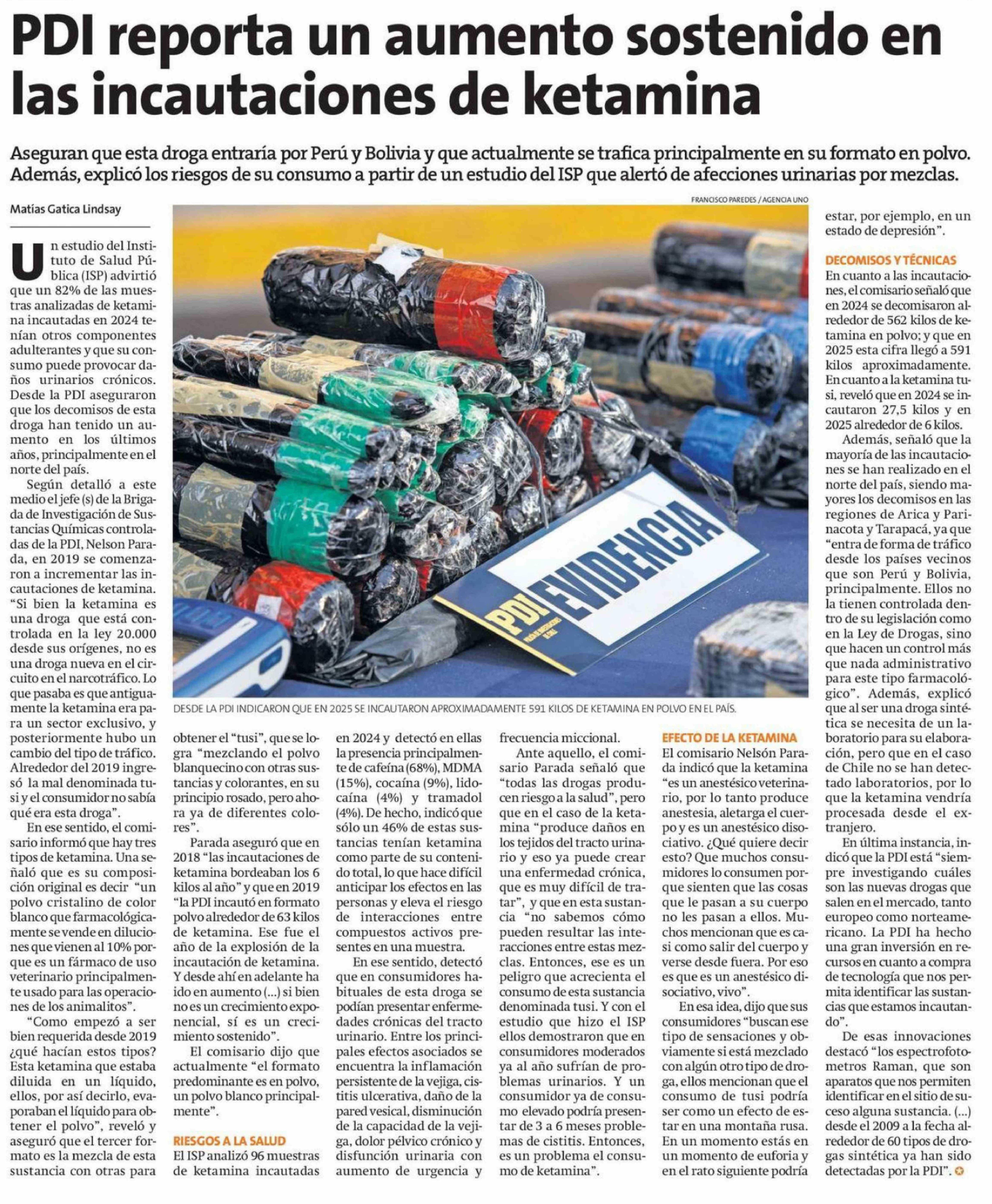 PDI reporta un aumento sostenido en las incautaciones de ketamina