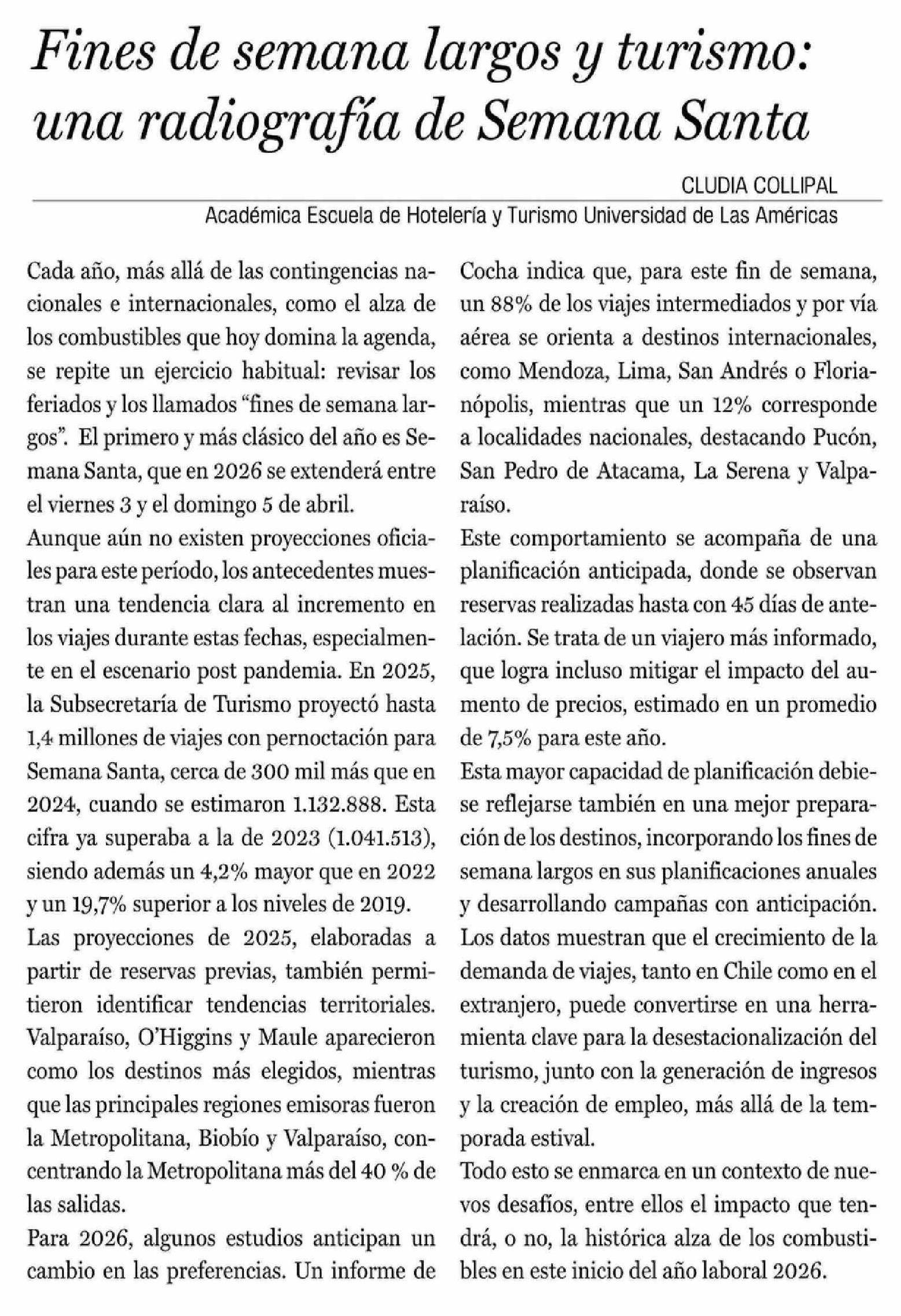 Cartas: Fines de semana largos y turismo: una radiografía de Semana Santa