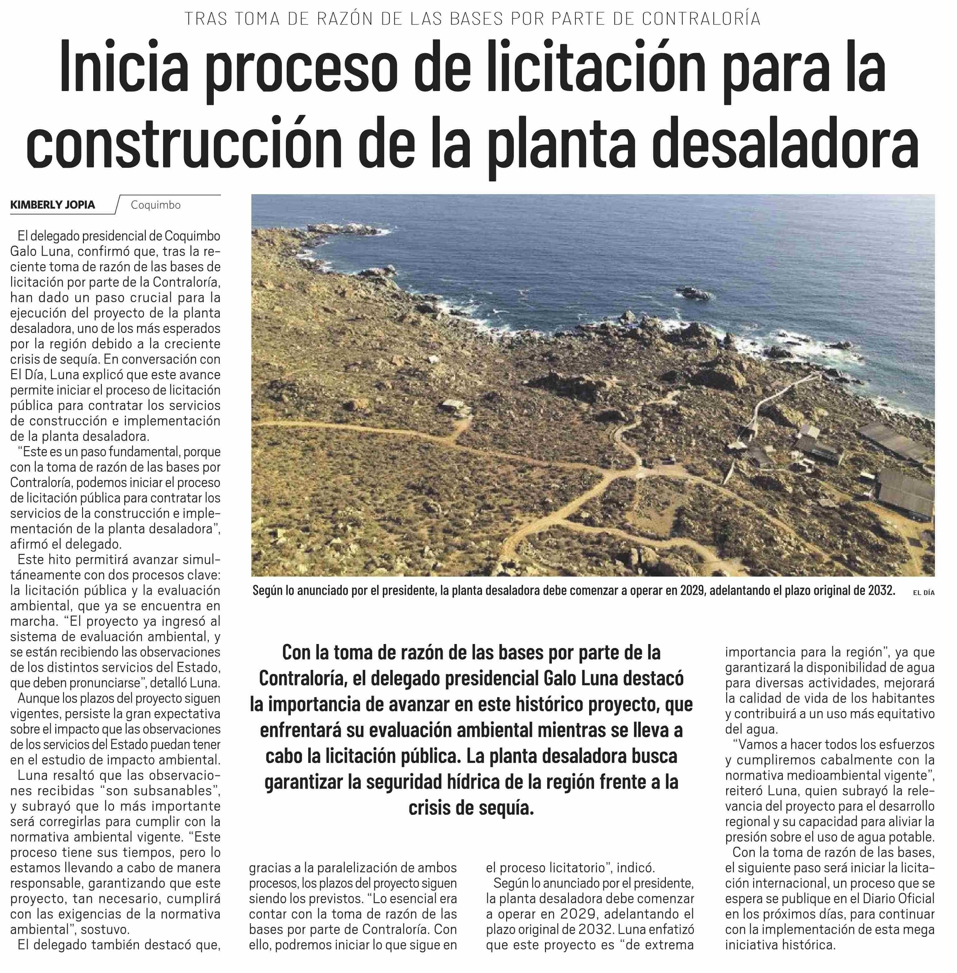 Inicia proceso de licitación para la construcción de la planta desaladora