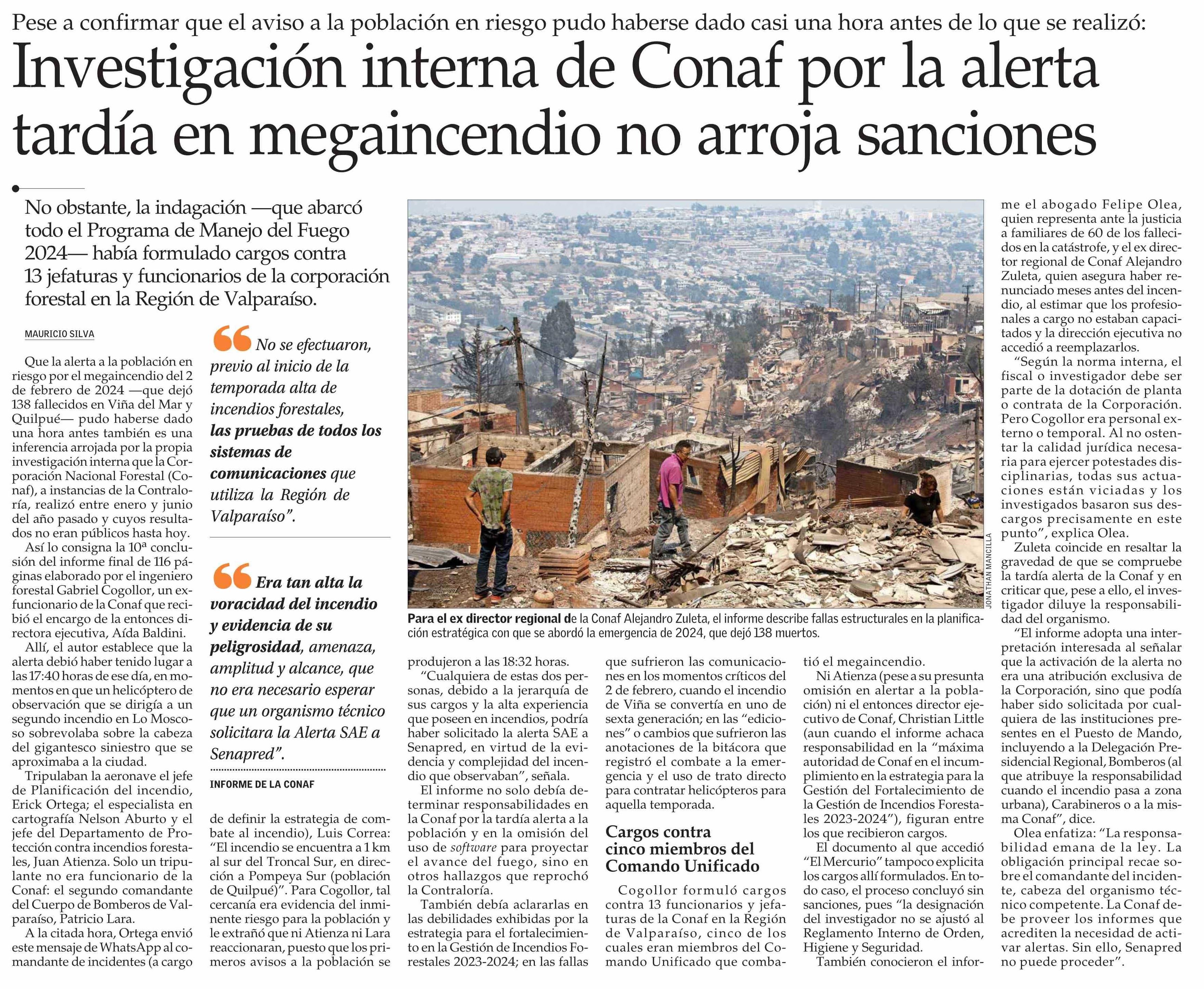 Investigación interna de Conaf por la alerta tardía en megaincendio no arroja sanciones