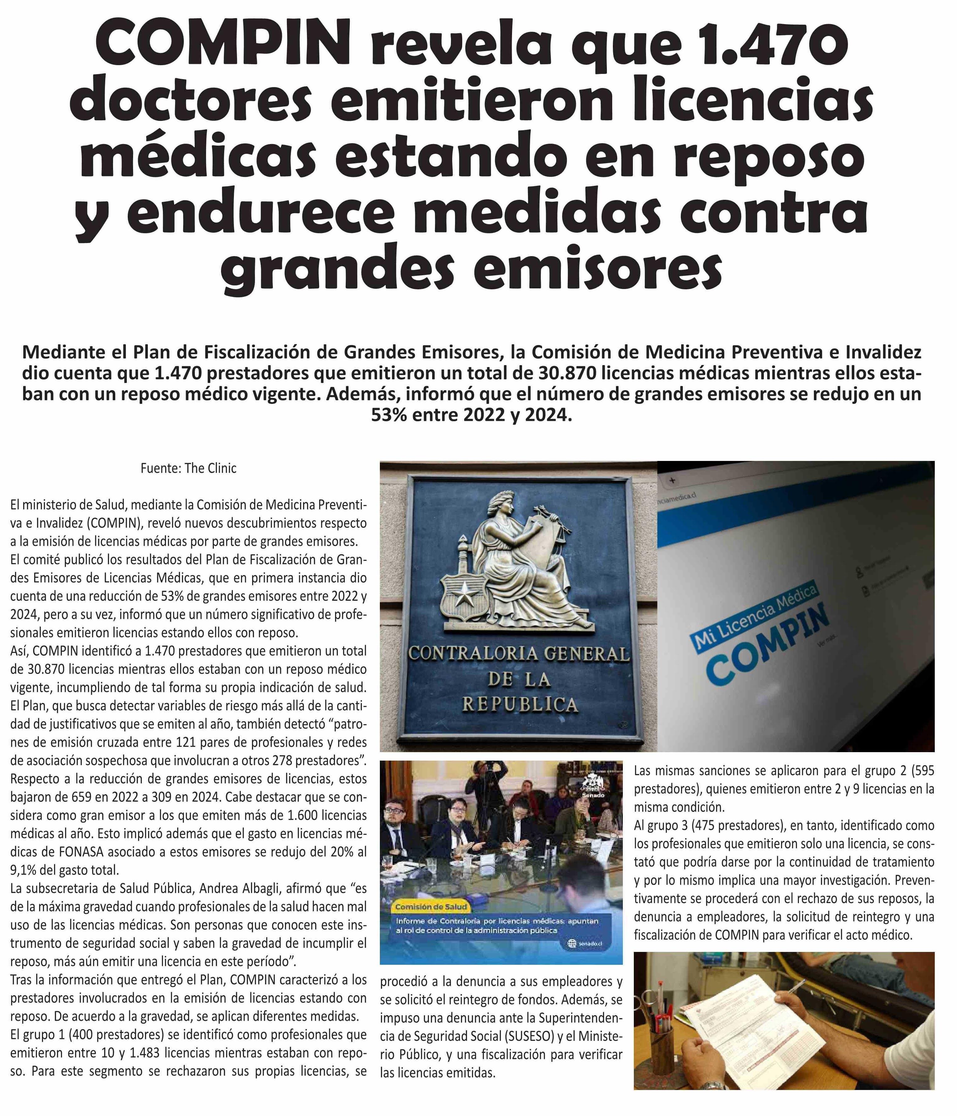 COMPIN revela que 1.470 doctores emitieron licencias médicas estando en reposo y endurece medidas contra grandes emisores