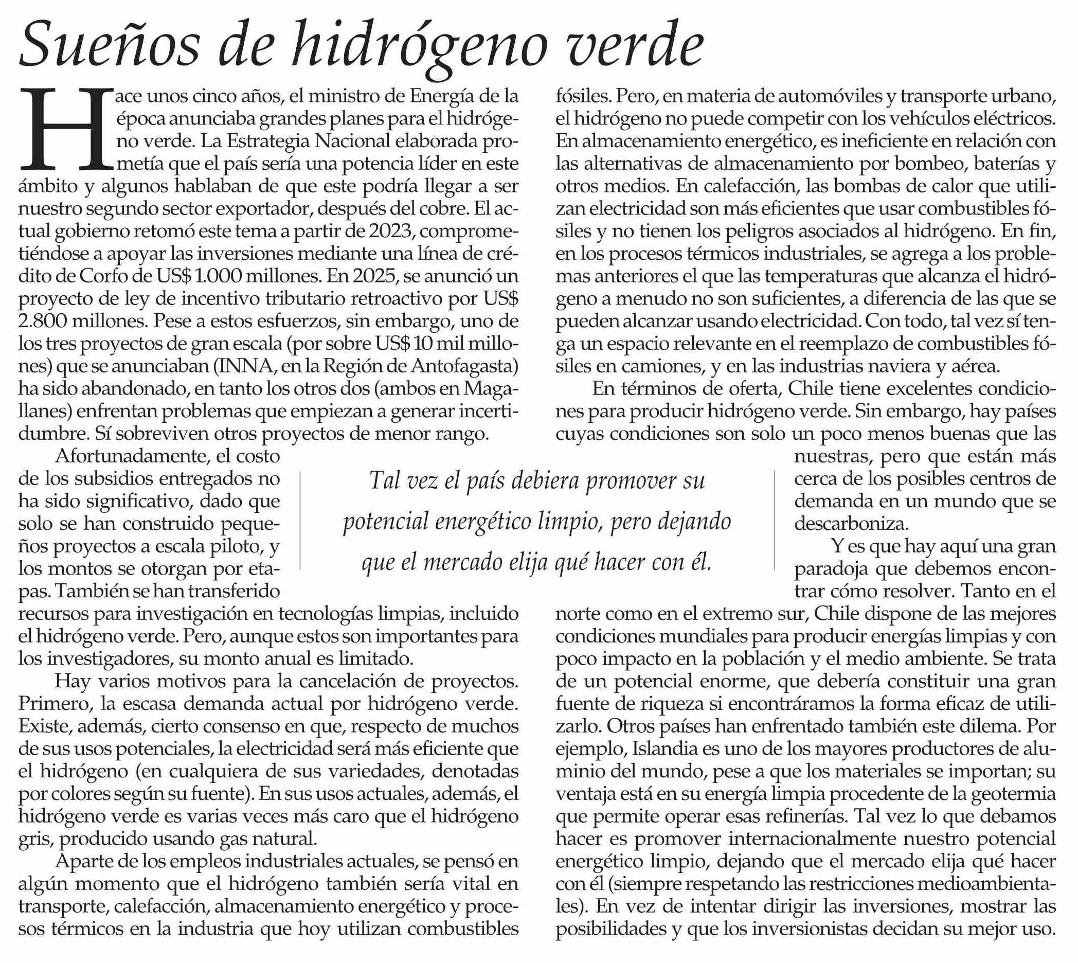 Editorial: Sueños de hidrógeno verde