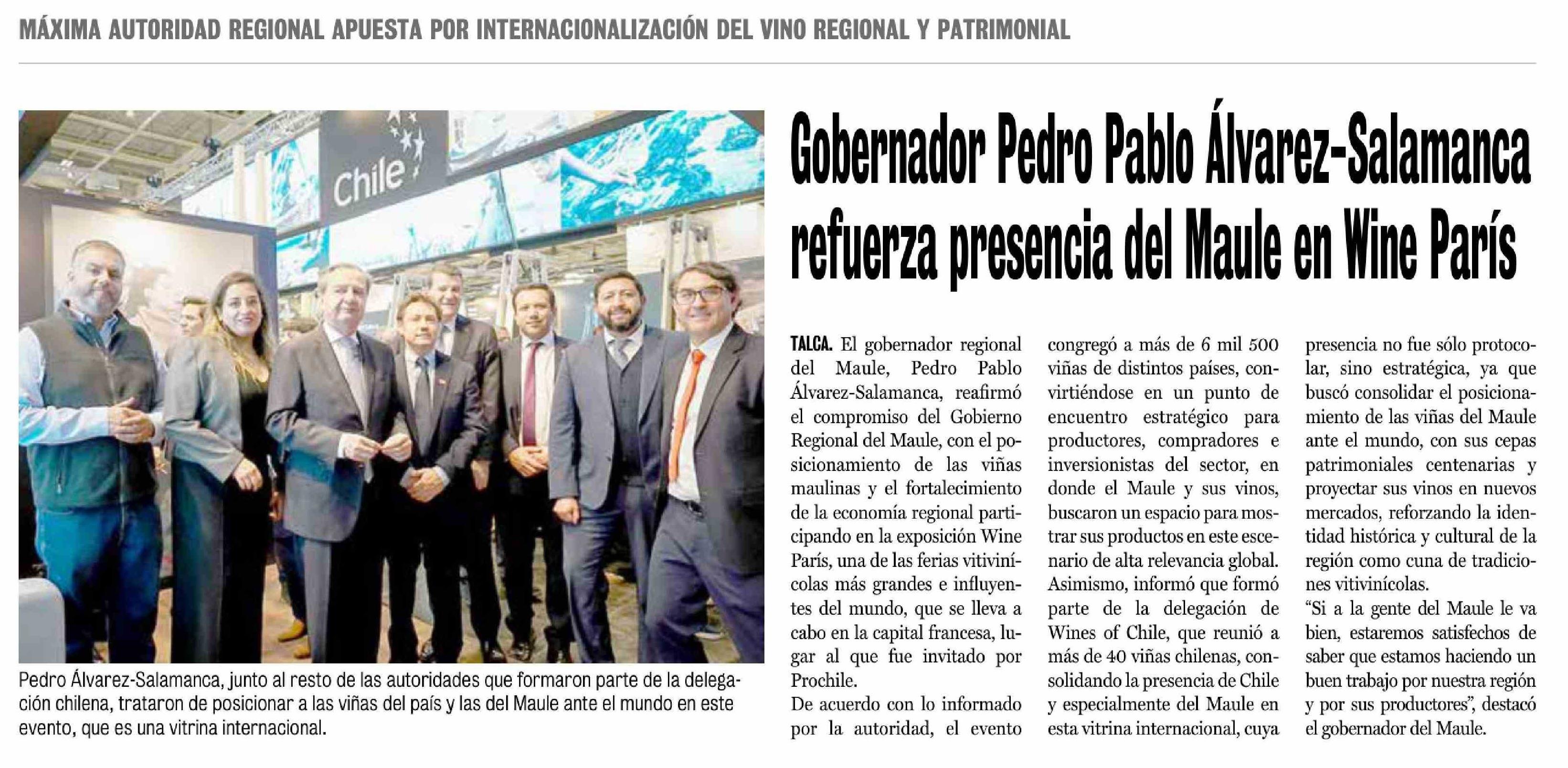 Gobernador Pedro Pablo Álvarez-Salamanca refuerza presencia del Maule en Wine París