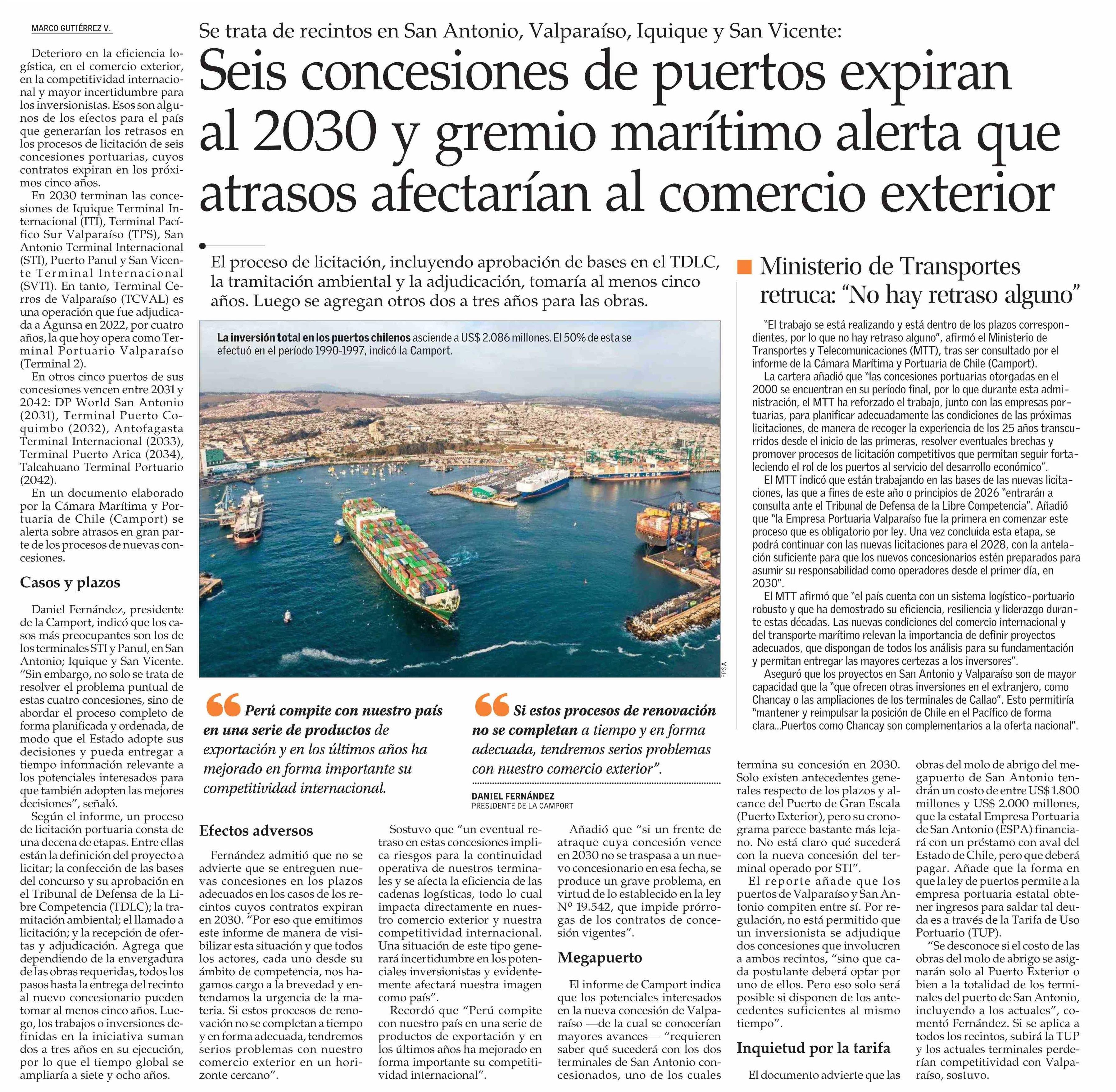 Seis concesiones de puertos expliran al 2030 y gremio marítimo alerta que atrasos afectarían al comercio exterior