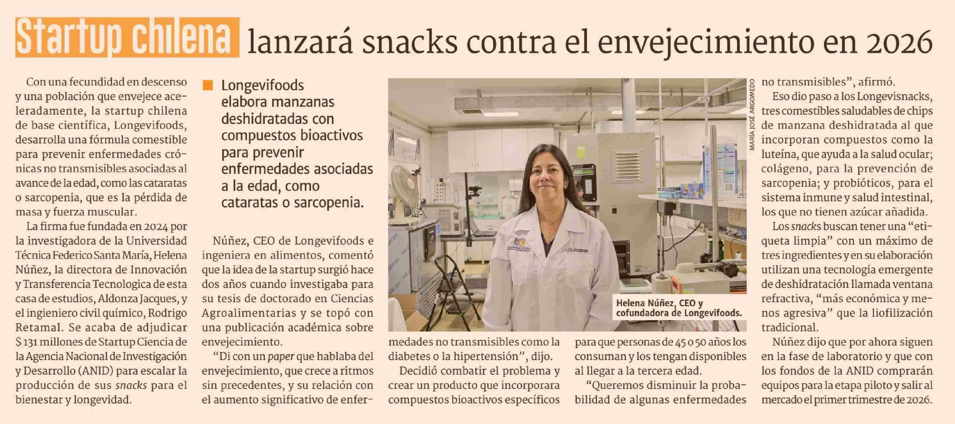 Startup chilena lanzará snacks contra el envejecimiento en 2026