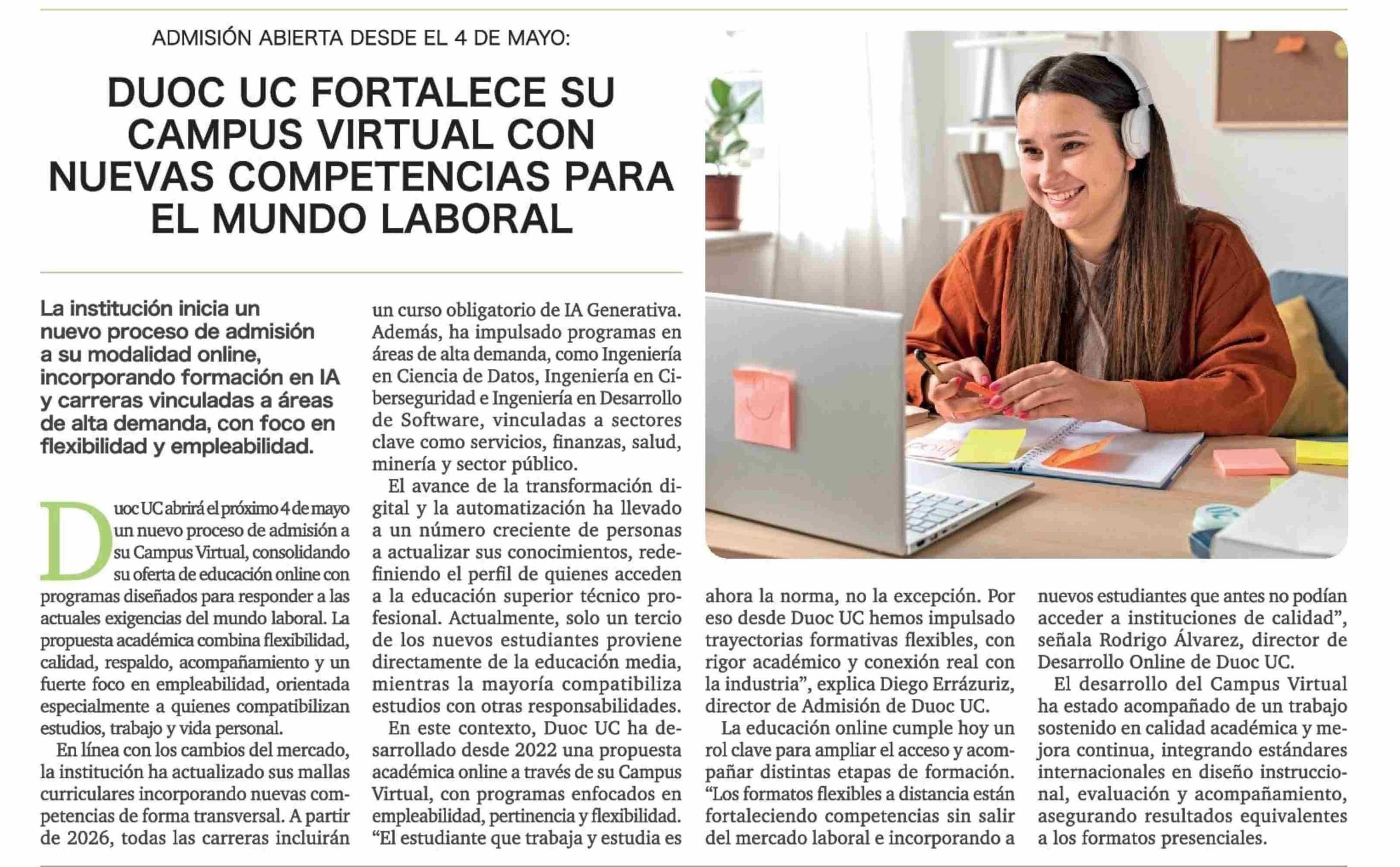 Título: DUOC UC FORTALECE SU CAMPUS VIRTUAL CON NUEVAS COMPETENCIAS PARA EL MUNDO LABORAL