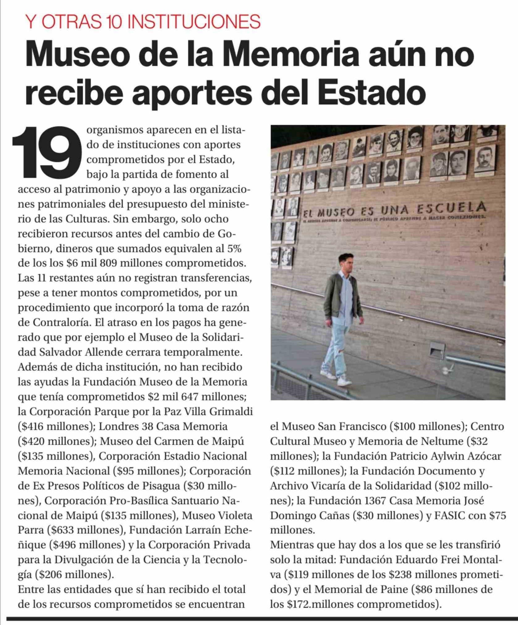 Museo de la Memoria aún no recibe aportes del Estado