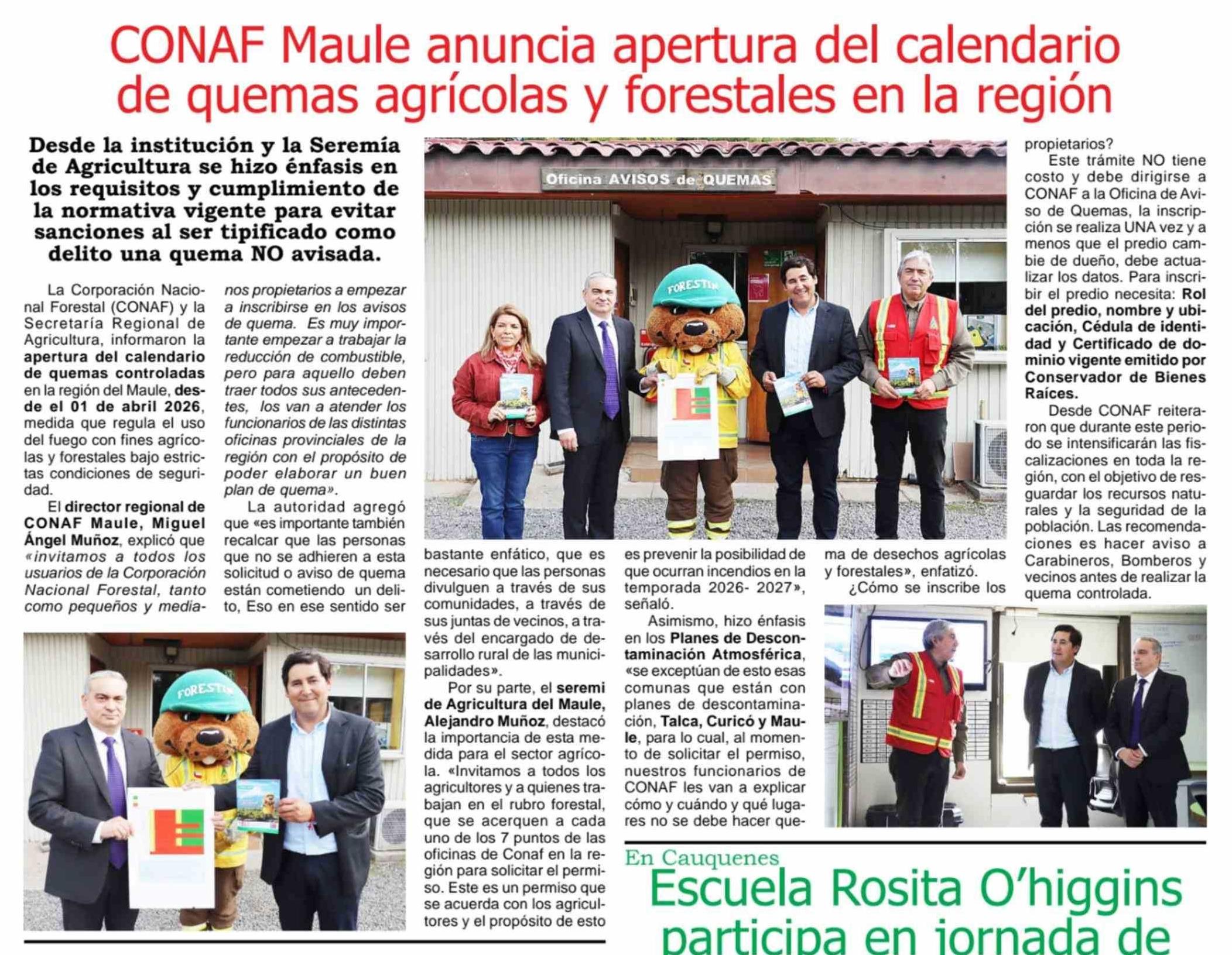 CONAF Maule anuncia apertura del calendario de quemas agrícolas y forestales en la región