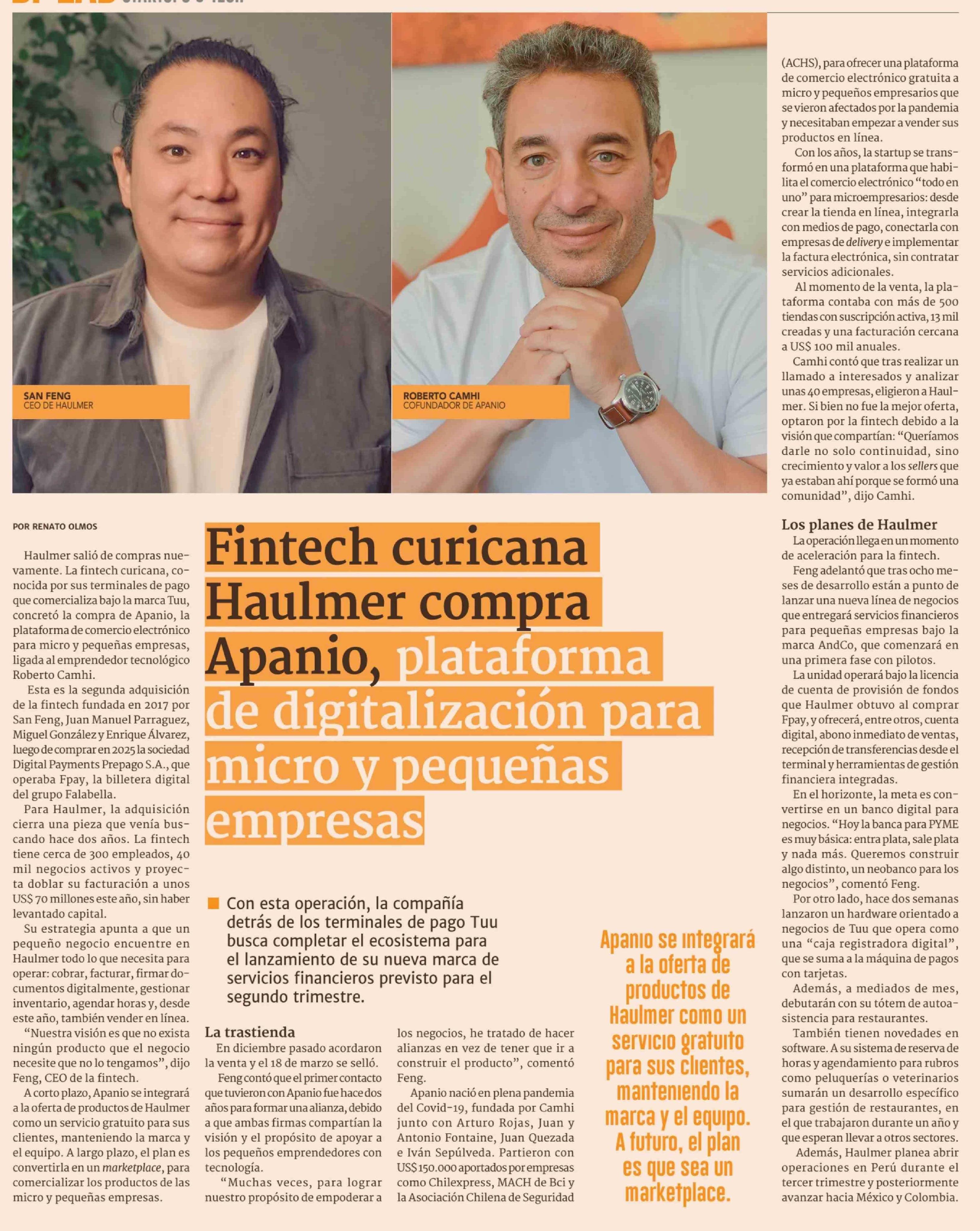 Título: Fintech curicana Haulmer compra Apanio, plataforma de digitalización para micro y pequeñas empresas